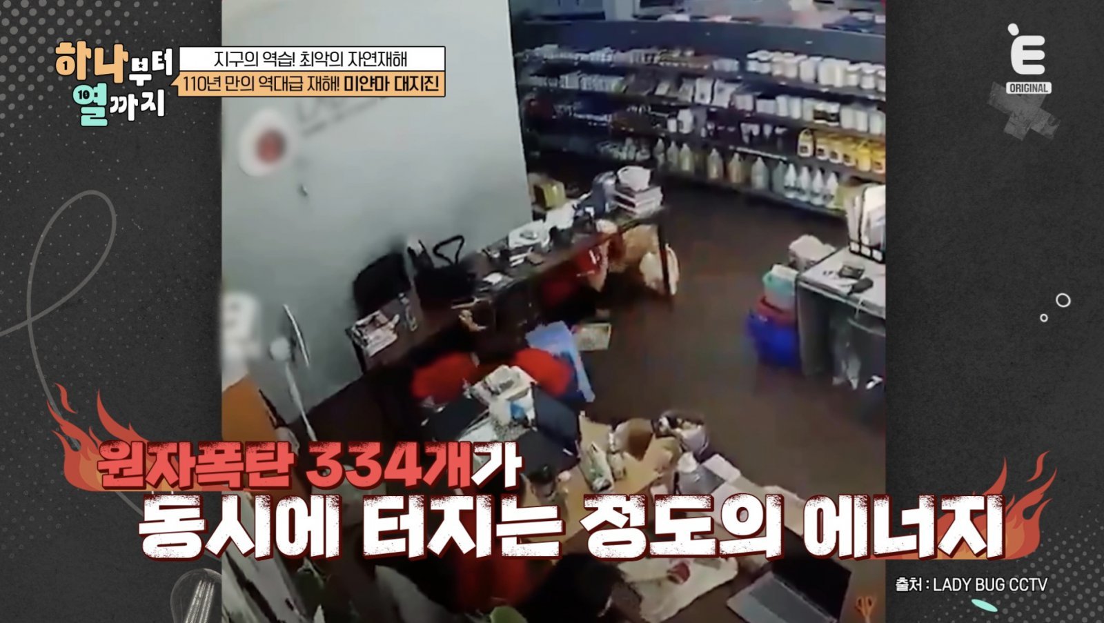 27일 방송된 티캐스트 E채널 ‘하나부터 열까지’에서는 ‘지구의 역습, 최악의 자연재해’를 주제로 장성규, 강지영, 궤도가 전 세계를 뒤흔든 재난을 순위 형식으로 소개했다.