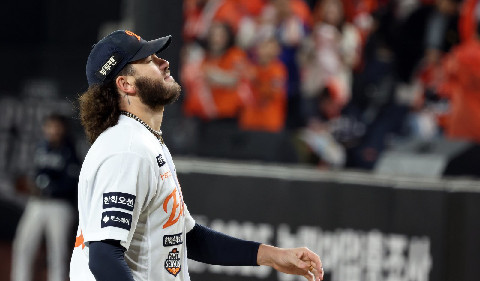 PO 5차전(24일) 등판 이후 4일만을 쉬고 다시 마운드에 오른 폰세의 투구 컨디션은 크게 좋지 않았다. 1회초 1사 이후 신민재에게 공을 8개씩이나 던진 뒤 볼넷을 내줬다. 직구 구속은 평소 상회하던 시속 155㎞를 넘지 못했다.