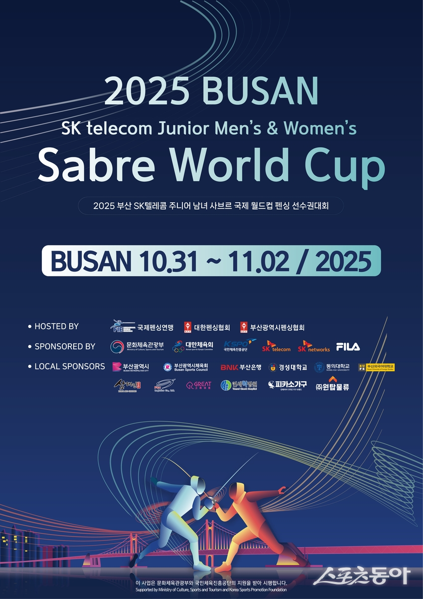 ‘2025 부산 SK텔레콤 주니어 남녀 사브르 국제월드컵 펜싱선수권대회’가 31일부터 다음 달 2일까지 부산 경성대 체육관에서 열린다. 한국을 비롯해 미국, 중국, 일본, 홍콩, 우즈베키스탄 등 약 20개국에서 선수 217명, 임원 110여명 등 총 300여명이 출전해 개인전과 단체전에서 최고의 검객을 가린다.한국펜싱의 효자 사브르 책임질 꿈나무 총출동