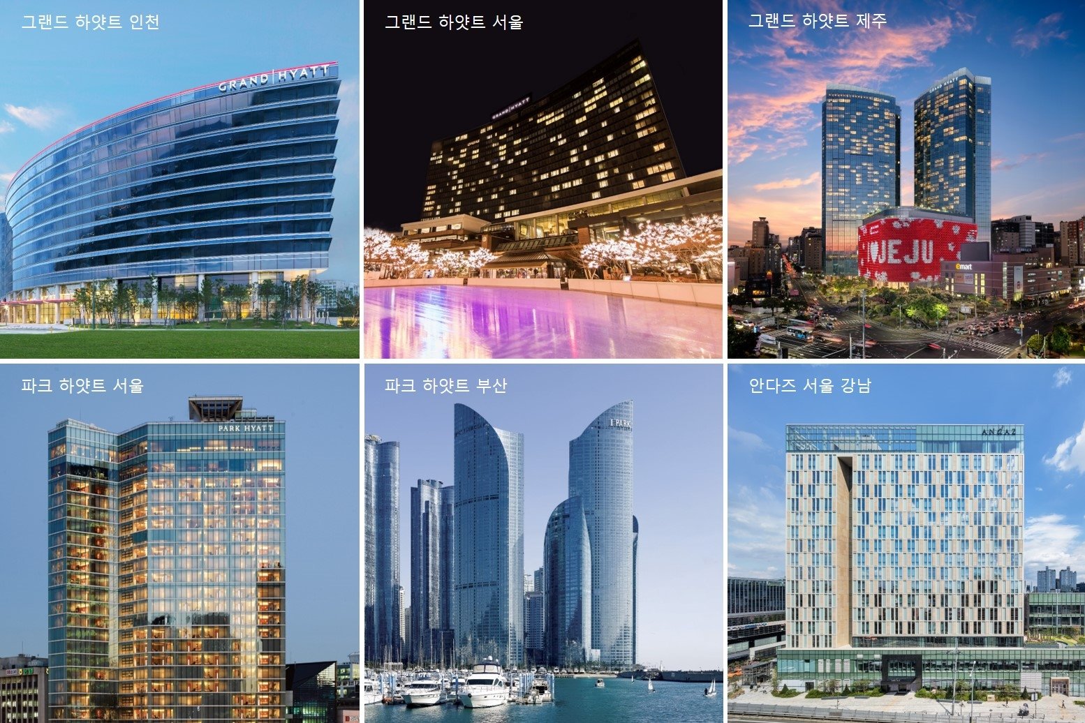 국내 참여 호텔은 ▲그랜드 하얏트 서울 ▲그랜드 하얏트 인천 ▲그랜드 하얏트 제주 ▲파크 하얏트 서울 ▲파크 하얏트 부산 ▲안다즈 서울 강남 등 총 6곳이다. 모두 주요 도시의 중심이거나 공항, 관광 명소 인근에 자리해 있어 접근성이 높다.