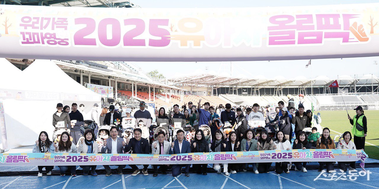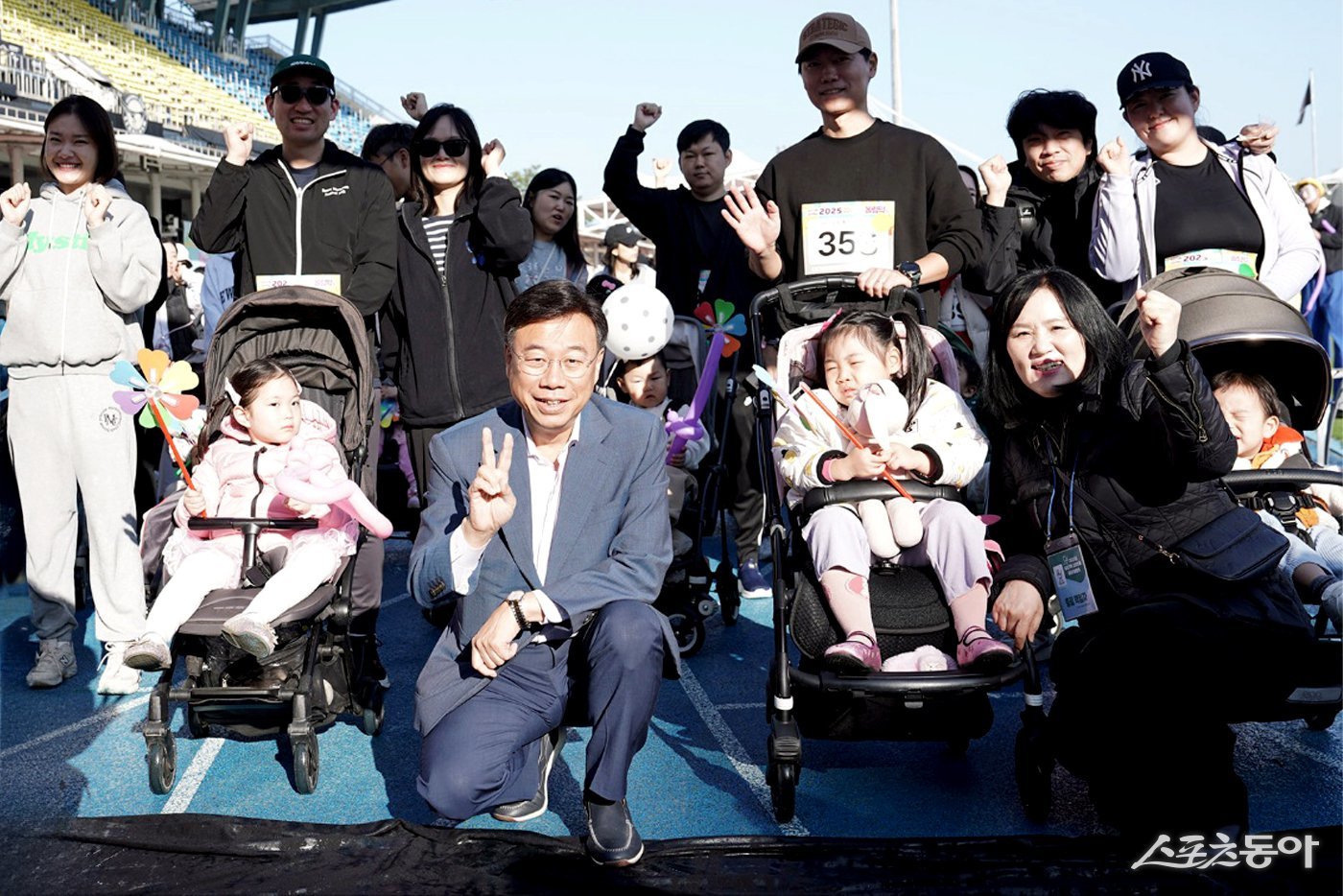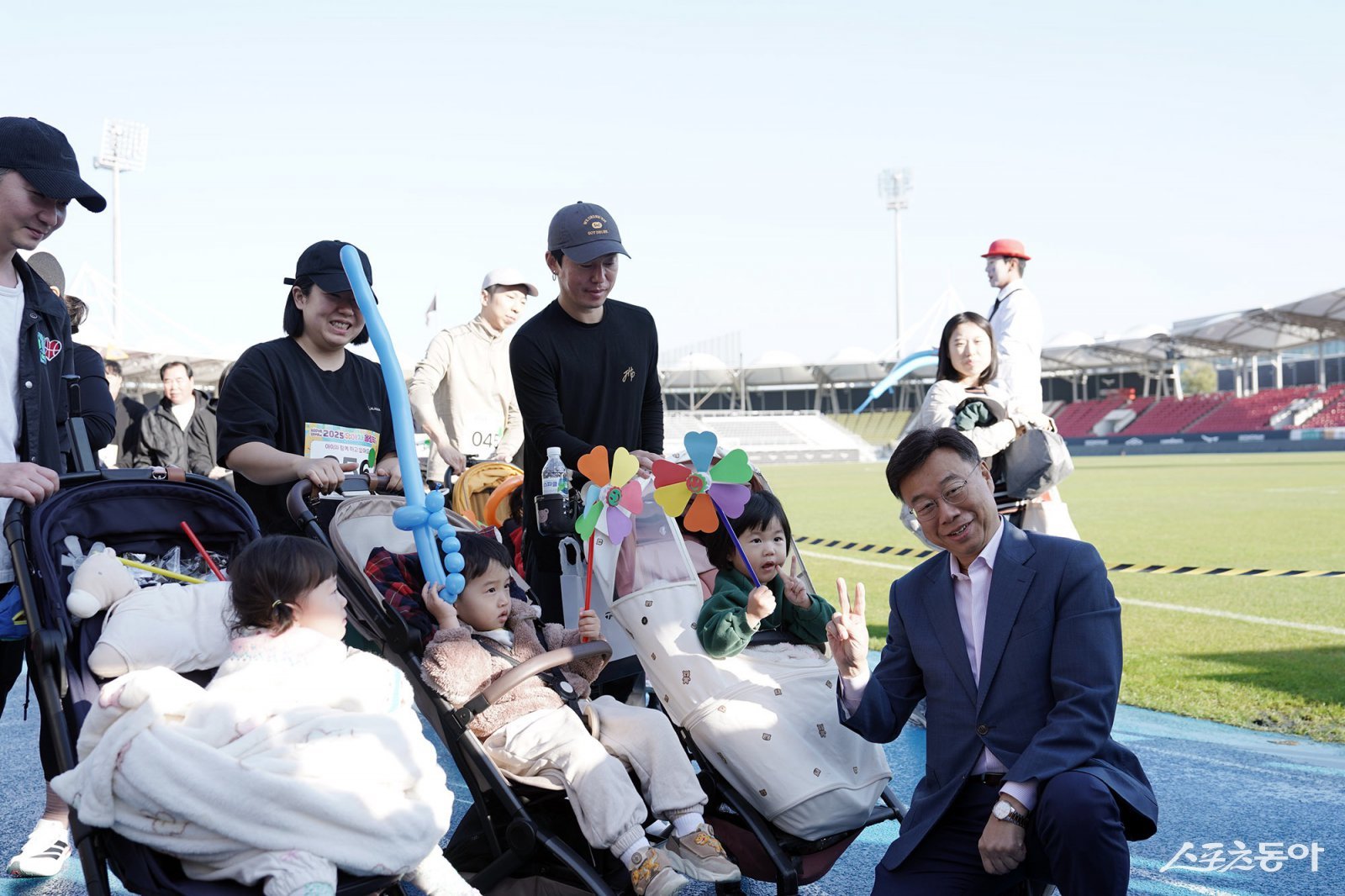 신상진 성남시장은 1일 탄천종합운동장과 탄천변 산책로에서 열린 ‘우리가족 꼬마영웅 유아차 올림픽’에 참석해 참가 가족들을 격려했다. 사진제공ㅣ성남시