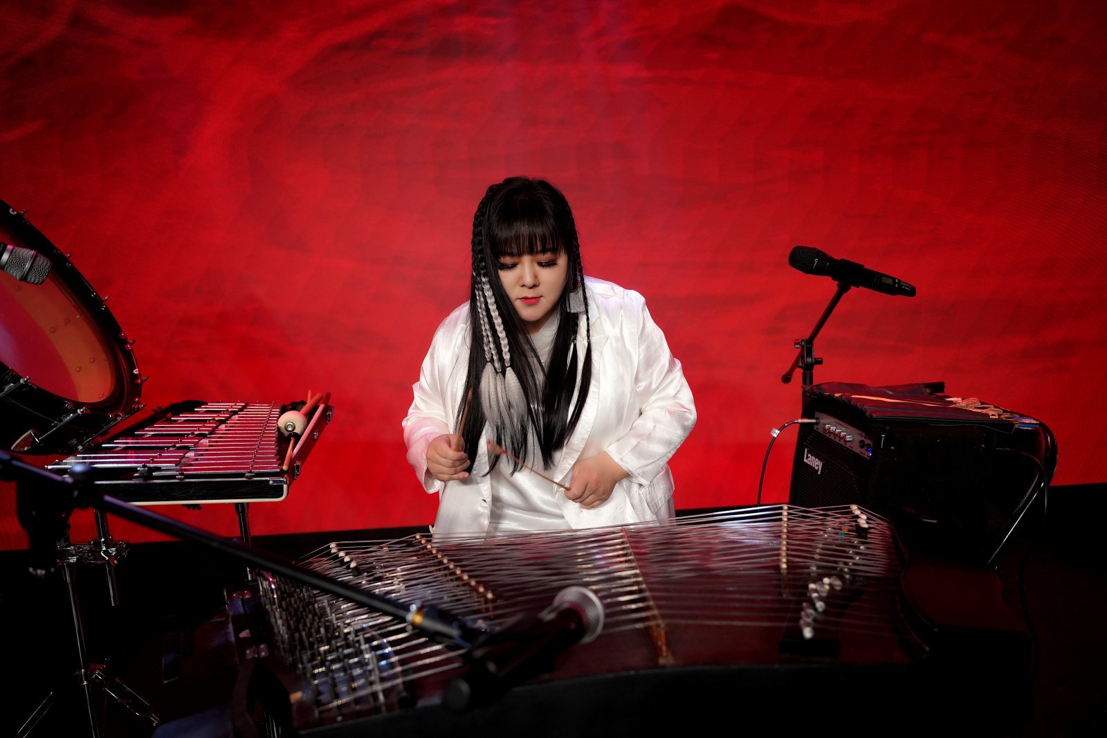 이날 무대의 주인공은 양금 연주자이자 작곡가 윤은화. 이재명 대통령과 시진핑 중국 국가주석이 지켜보는 자리에서 윤은화는 자신이 개량한 56현 양금으로 자작곡을 연주하며 한국 음악의 품격과 예술적 가치를 우아하게 드러냈다.