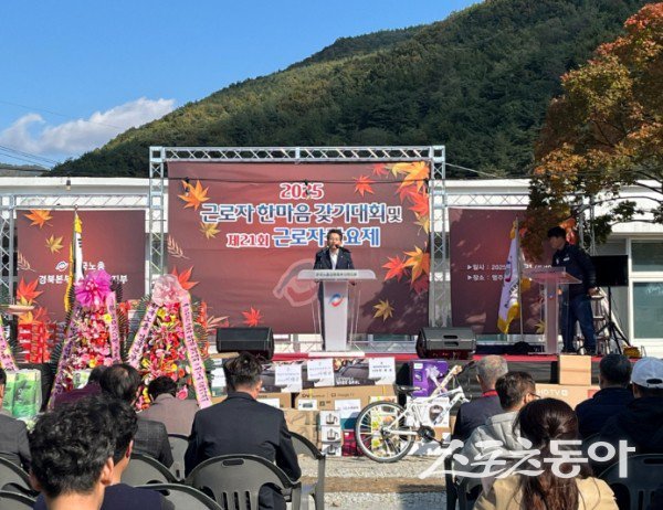 영주시가 ‘2025 근로자 한마음 축제’를 개최해 유정근 영주시장 권한대행이 인사말을 하고 있는 모습. 사진제공ㅣ영주시