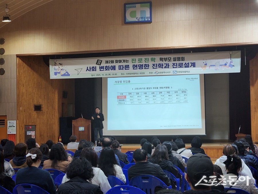 인천 서구는 인천당하중학교에서 학부모 및 학생들이 참여한 가운데 ‘2025년 제2회 찾아가는 진로‧진학 학부모 설명회’를 진행했다.