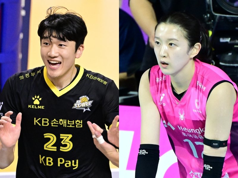 KB손해보험 센터 이준영(왼쪽)에게 누나 이다현은 선의의 경쟁자다. 이번 시즌 V리그 두 번째 시즌을 보내고 있는 이준영은 “누나보단 블로킹 하나라도 더 해야한다”고 각오를 밝혔다. 사진제공|KOVO