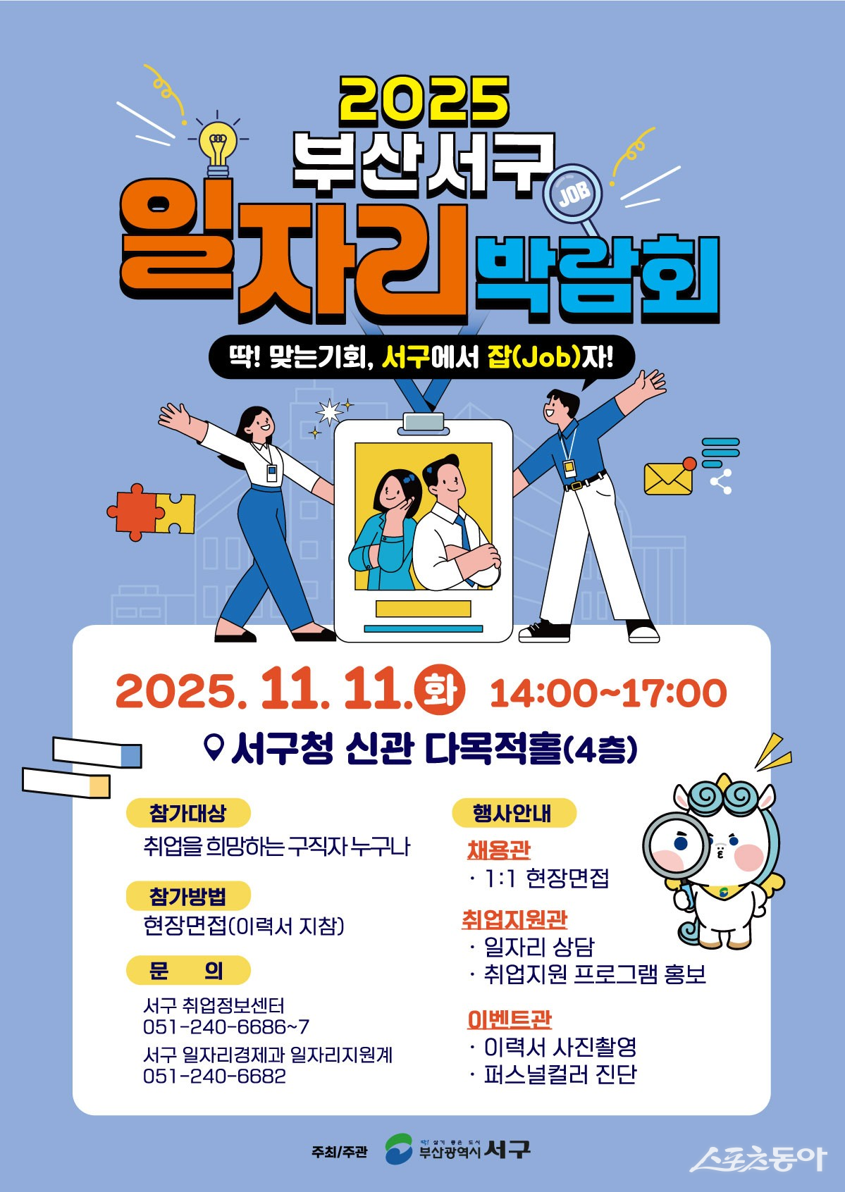 부산 서구(구청장 공한수)가 구직자에게 다양한 취업 기회를 제공하고 지역 기업의 인력난 해소를 지원하기 위해 ‘2025 서구 일자리박람회’를 개최한다.