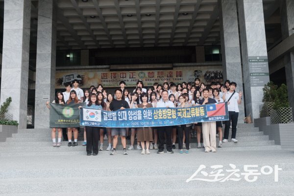 청도고등학교(교장 이수근)는 지난 10월 28일부터 31일까지 3박 4일 동안 1·2학년 희망 학생들을 대상으로 대만 가오슝 시립 중정고등학교를 방문해 대만·체코 학생과의 국제교류 활동을 성공적으로 마무리했다고 밝혔다. 이번 프로그램은 학생들의 글로벌 이해력과 문화 간 소통 능력 향상을 목표로 마련되었으며, 역사·문화·과학 등 다양한 주제의 교육 활동이 진행됐다.사전 준비 과정에서 학생들은 온라인으로 중정고 학생들과 공동 프로젝트 기획 및 교류 일정 조율을 진행해 협업 기반을 마련했다. 이어 부산 김해국제공항을 출발해 가오슝에 도착한 학생들은 연지담, 용호탑, 춘추각 등 주요 문화 유적과 보얼 예술 특구, 육합 야시장을 탐방하며 현지 역사와 예술 문화를 직접 체험했다.