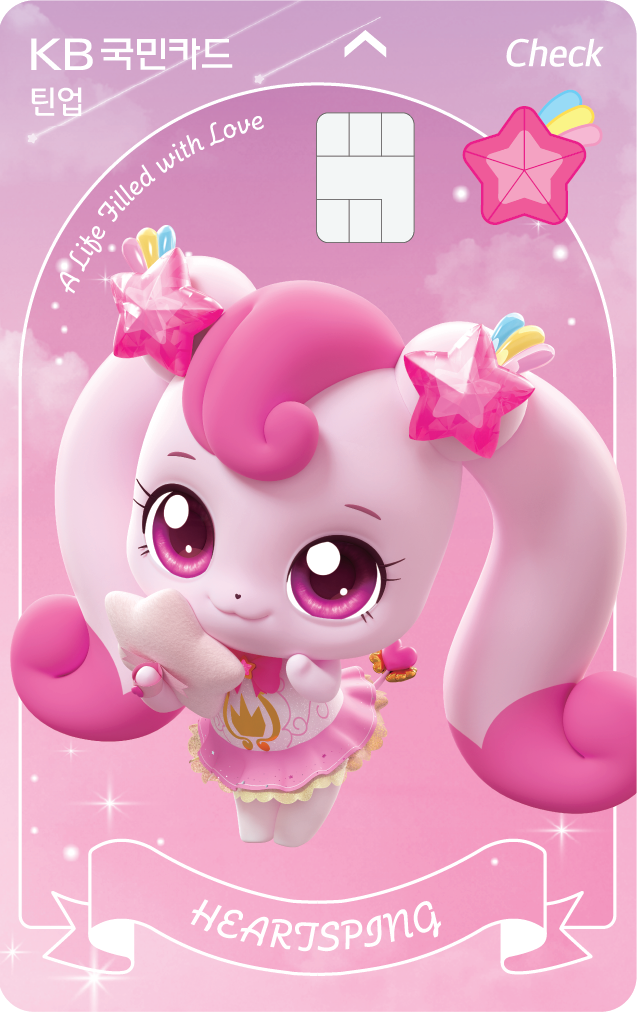 ‘캐치! 티니핑’ 협업 캐릭터를 디자인에 적용한 ‘KB 틴업 체크카드’. 사진제공|KB국민카드