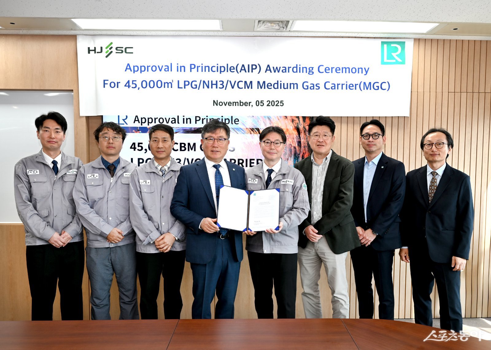 HJ중공업이 영국 로이드선급(Lloyd’s Register, LR)으로부터 4만 5000㎥급 중형 LPG·암모니아 운반선에 대한 기본설계승인(Approval in Principle)을 획득했다고 6일 밝혔다.