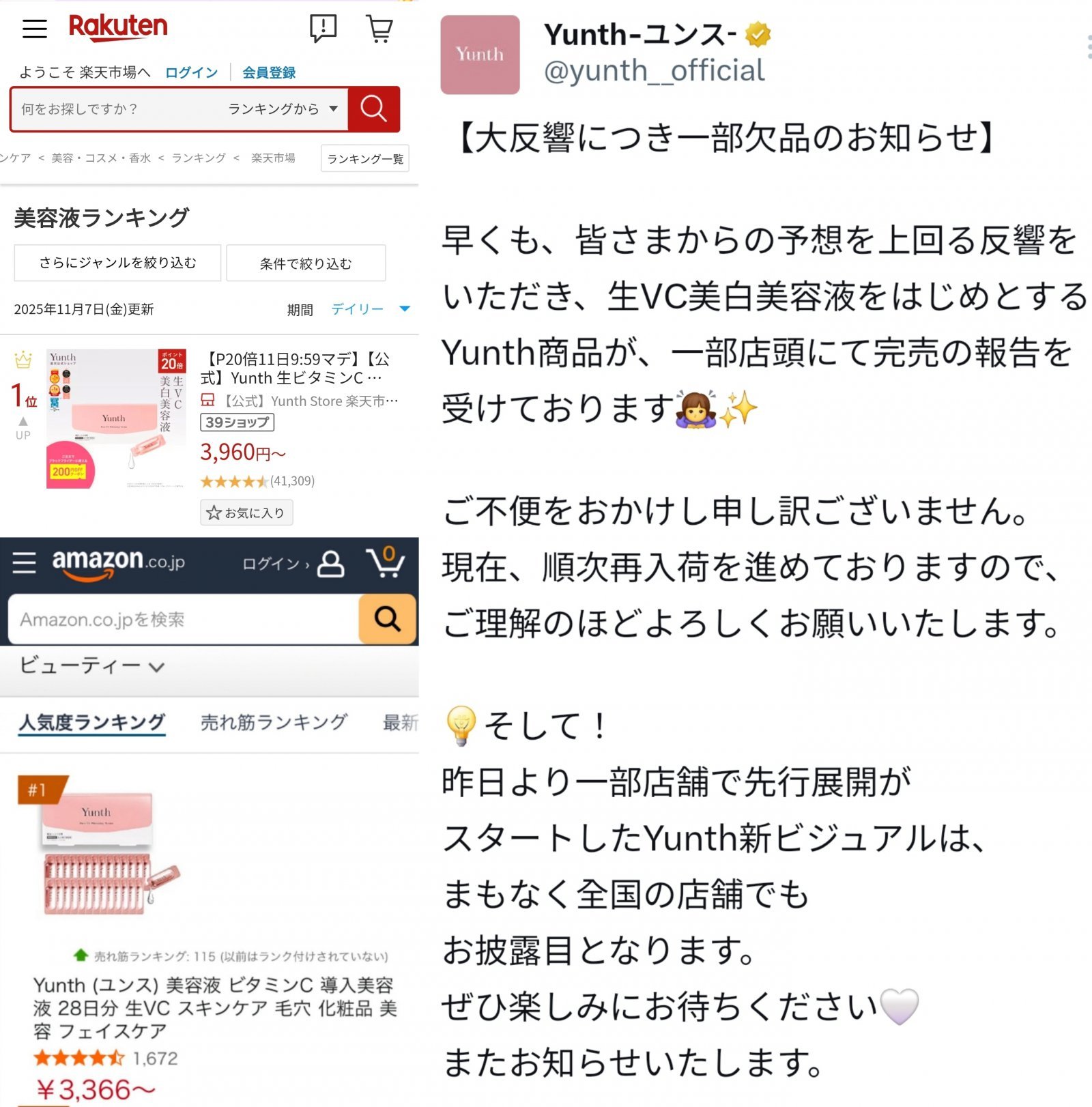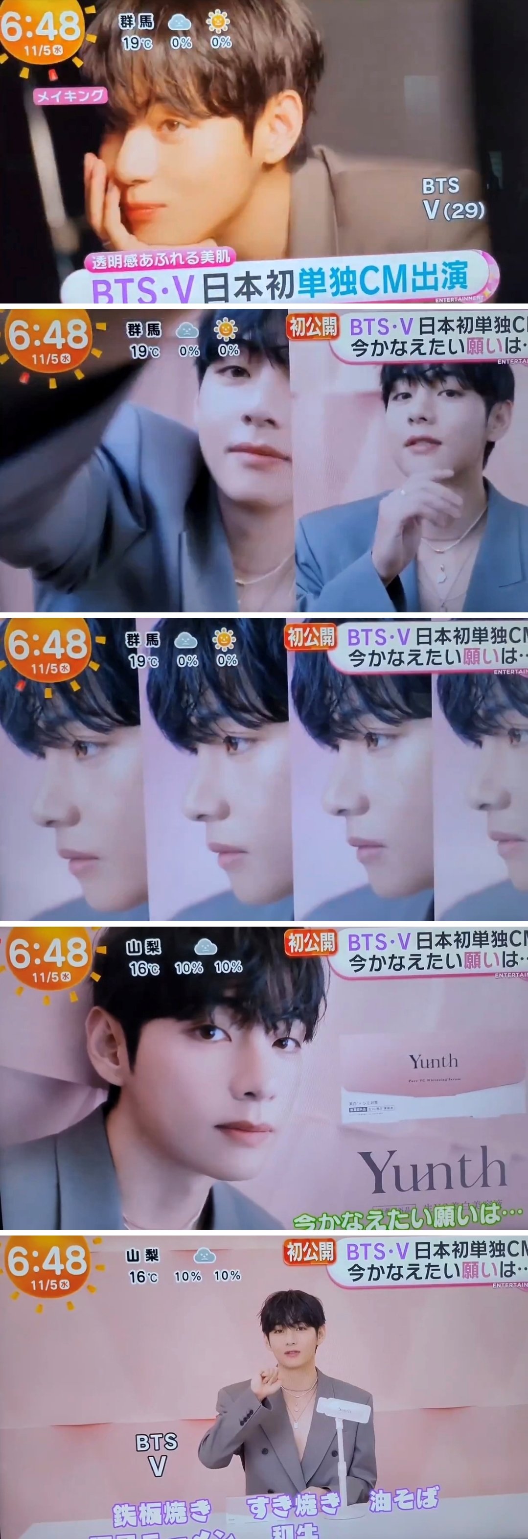 윤스 공식 계정은 “예상을 넘는 반향으로 매장에서 제품이 매진됐다”며 “현재 순차적으로 재입고를 진행 중”이라고 공지했다. 실제로 일본 후지TV 인기 프로그램 ‘메자마시’는 “뷔가 일본에서 최초로 스킨케어 브랜드 광고 모델이 됐다”며 그의 인터뷰 영상과 광고를 함께 방송했다.