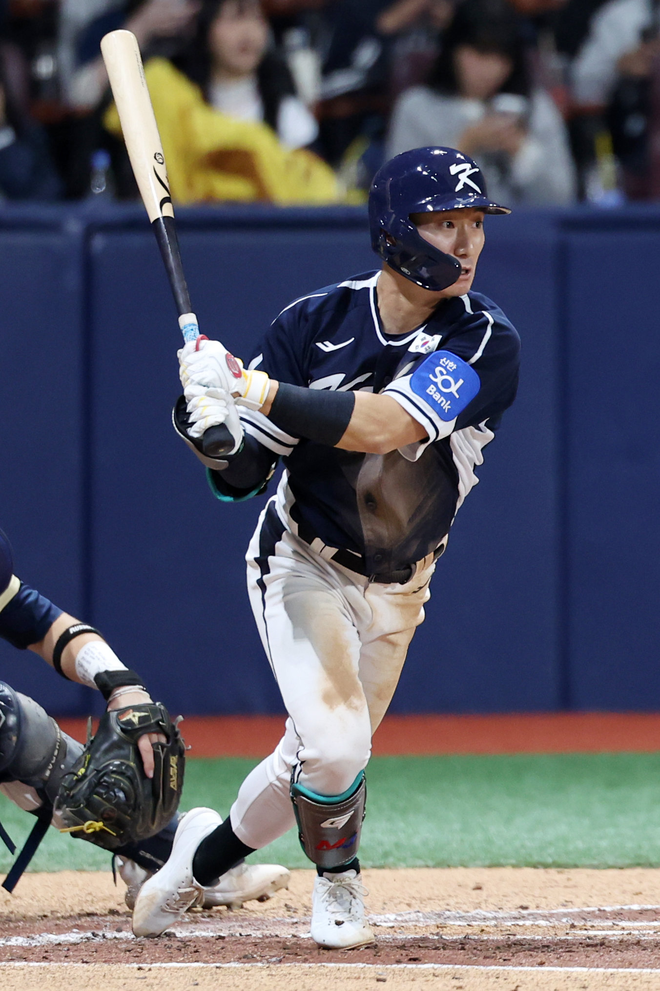 LG 신민재는 대주자 스페셜리스트를 거쳐 KBO리그 정상급 2루수로 고속 성장했다. 이제는 태극마크를 달고 그라운드를 누빌 채비를 모두 마쳤다. 신민재가 9일 고척스카이돔에서 열린 체코와 ‘K-베이스볼시리즈’ 2차전 4회초 2사 주자 1·3루서 신민재가 1타점 적시타를 쳐내고 있다. 고척 |뉴시스