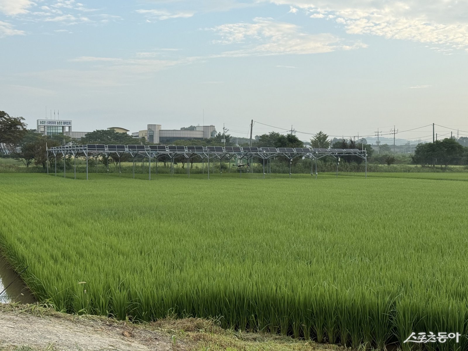 영암군은 2023년 농림축산식품부의 예산을 지원받아, 지난해 농업기술센터 직영 논 1,000㎡ 면적에 45kW 규모의 영농형 태양광 설비를 설치했다.