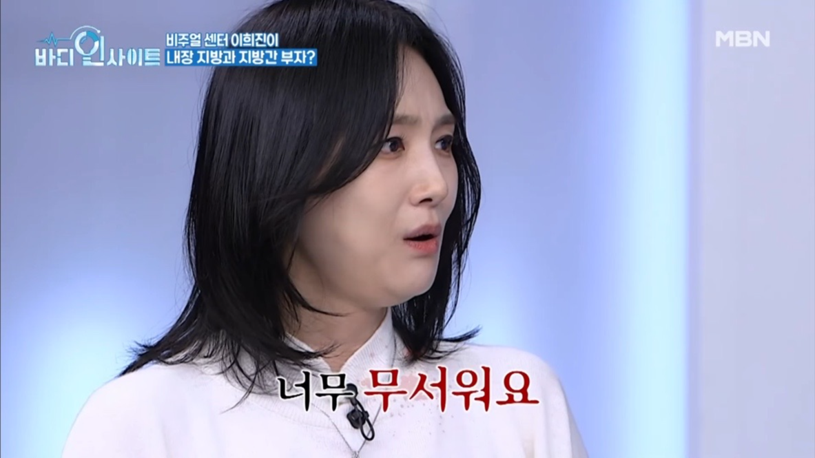 건강검진 결과는 충격적이었다. 이희진은 10년 내 지방간이 생길 위험이 65%에 달하고, 당뇨 전 단계 진단까지 받았다. 의사는 “겉보기엔 날씬하지만 내장 지방이 많은 전형적인 마른 비만형 체형”이라며 “지방간과 만성 염증이 간에 부담을 주고 당뇨로 이어질 수 있다”고 설명했다.