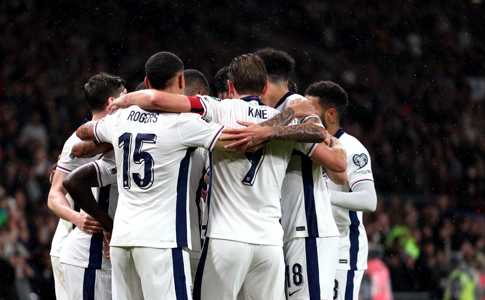 잉글랜드 대표팀 선수들이 14일(한국시간) 런던 웸블리 스타디움서 열린 세르비아와 북중미월드컵 유럽예선 홈경기에서 승리한 뒤 기뻐하고 있다. 런던|신화 뉴시스