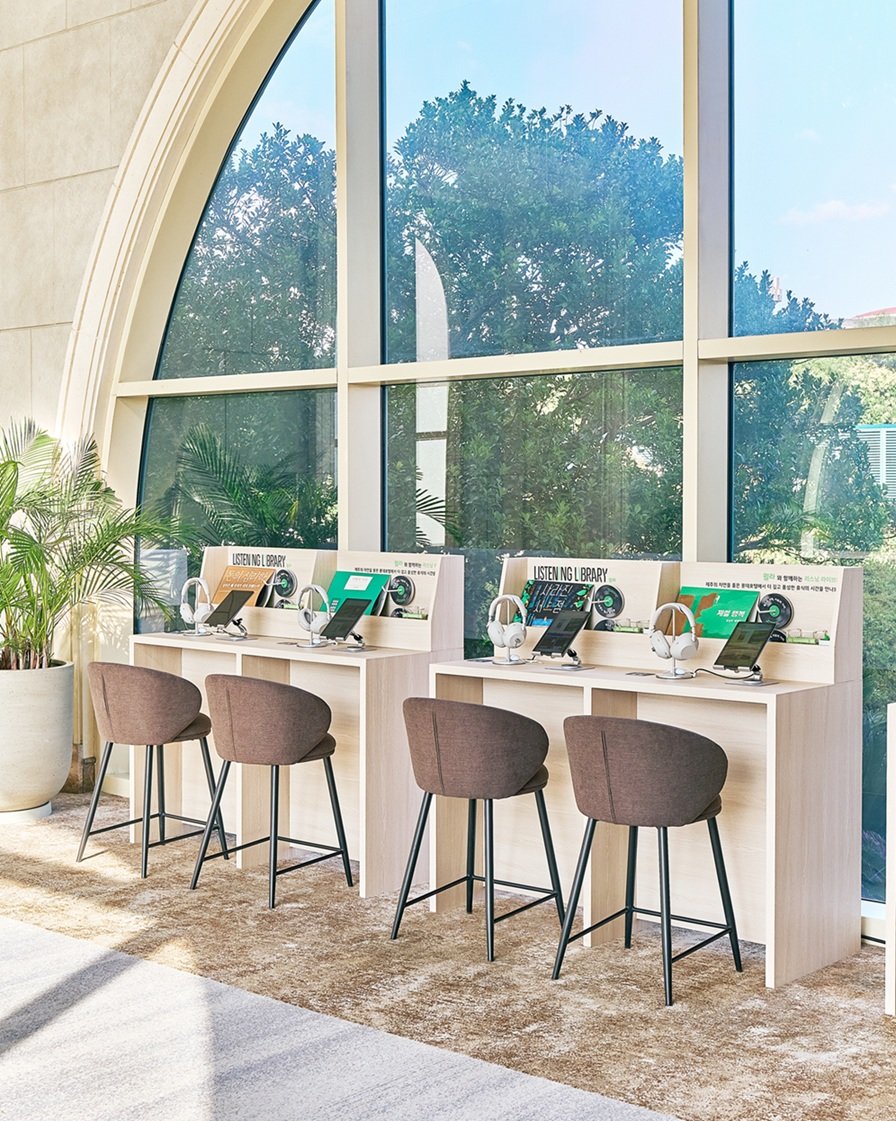 롯데호텔 제주는 통합 독서 플랫폼 윌라와 협업해 호텔 안에 ‘리스닝 라이브러리’를 마련했다. LP바 감성을 떠올리게 하는 이 공간은 오디오북과 전자책을 편안하게 즐길 수 있도록 꾸며졌다. 테마별 오디오북 플레이리스트 존과 필사 체험이 가능한 구역도 더해져 있어 여행 중에도 몰입감 있는 독서 시간을 보낼 수 있다.