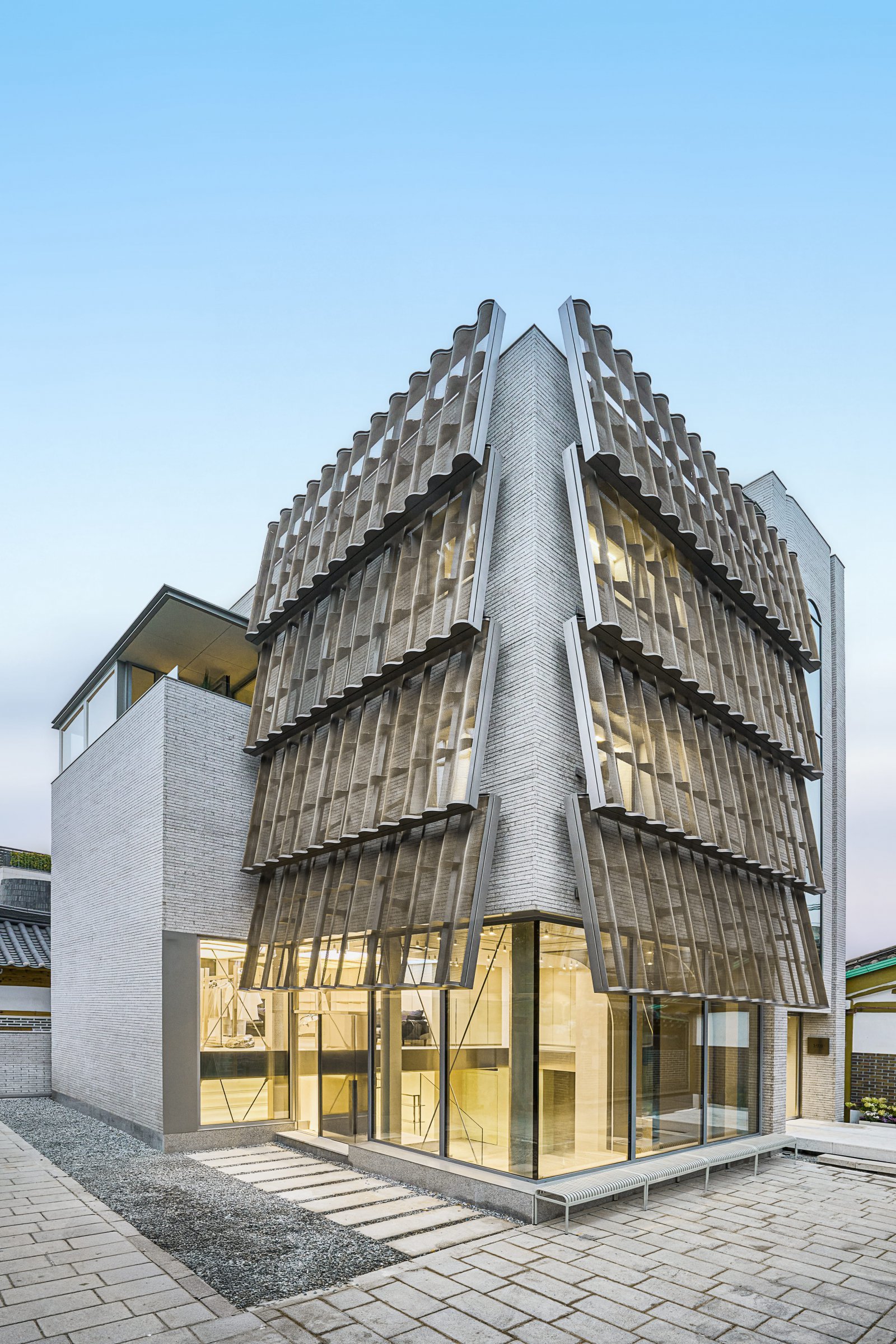 단독주택을 현대적으로 개조해 한국의 미를 균형 있게 재해석했다. 외관은 전통 기와의 형태를 금속 구조물로 구현해 현대적인 건축미를 강조했다. 내부는 은색·회색 톤과 미니멀한 구조미가 어우러져 브랜드의 감각과 라이프스타일을 경험할 수 있는 공간으로 완성했다.