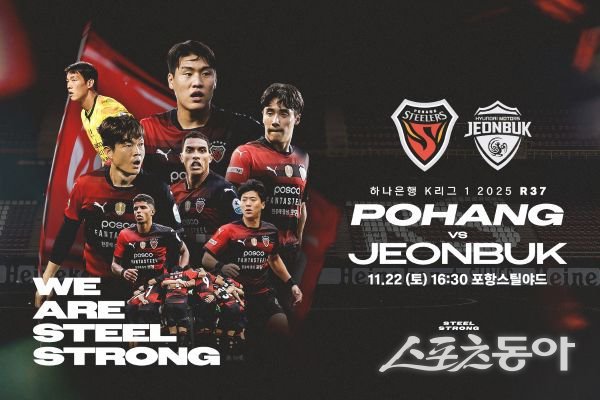 포항스틸러스는 오는 22일 오후 4시 30분 포항스틸야드에서 전북현대와 하나은행 K리그1 2025 37라운드를 펼친다.