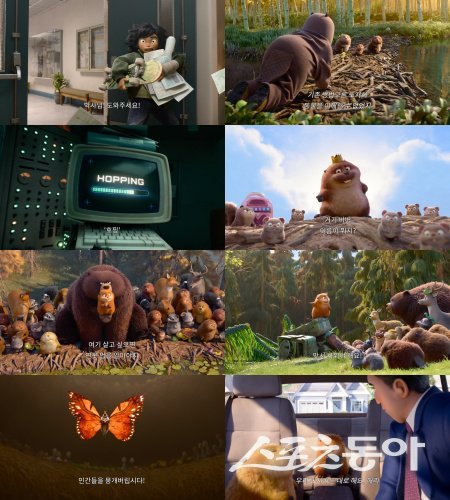 함께 공개된 메인 예고편은 호핑 기술을 통해 로봇 비버로 변신한 ‘메이블’의 시선을 따라 동물들의 세계를 생생하게 보여주며 호기심을 불러일으킨다. 들뜬 마음으로 연못 세계에 발을 들인 메이블에게 연못의 리더인 조지가 연못 생존 규칙인 ‘연못 법’을 소개하는 장면은 그동안 볼 수 없었던 유쾌한 동물 사회의 모습을 보여주며 흥미를 높인다.