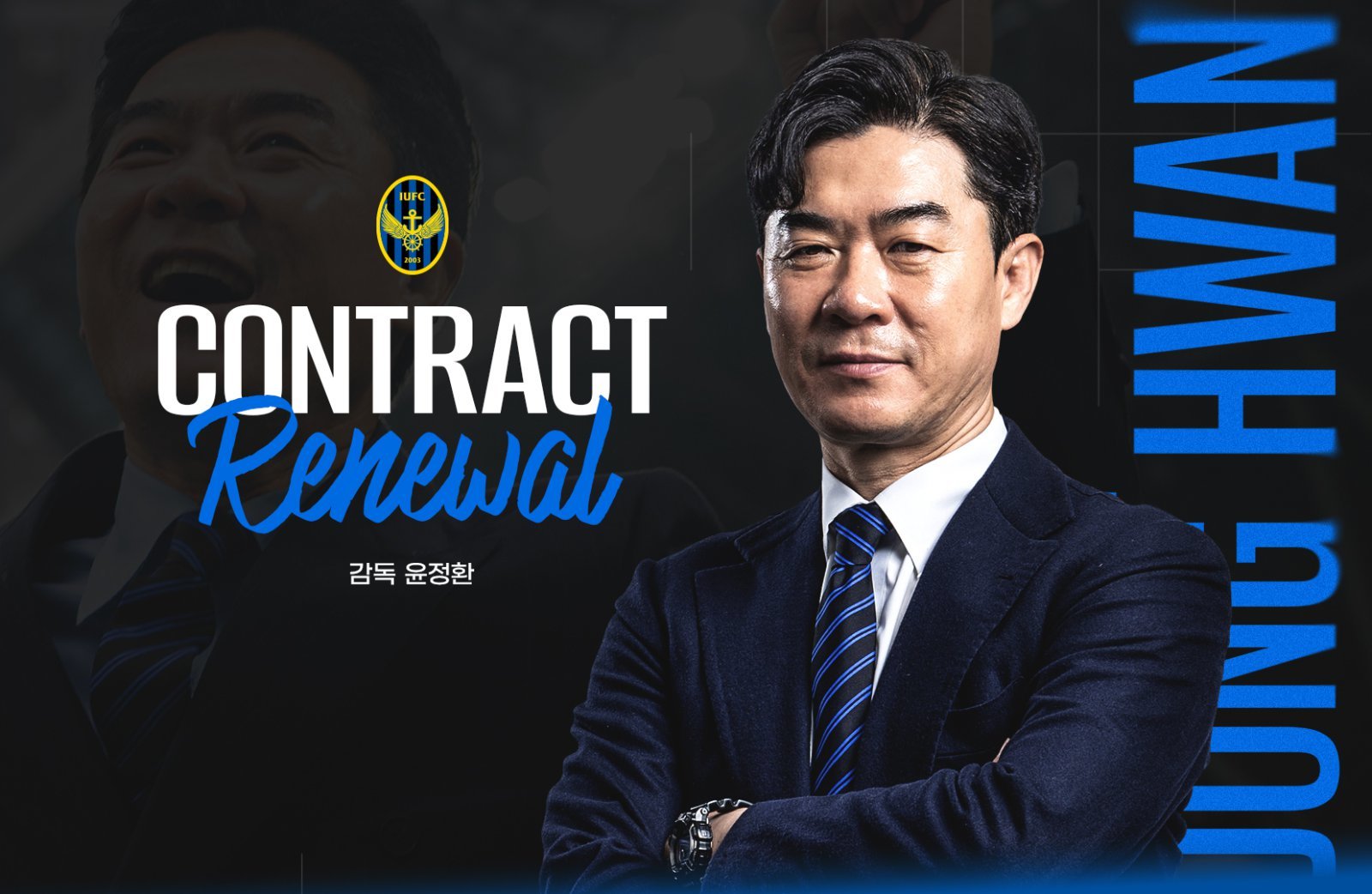 인천은 23일 “윤 감독과 재계약을 체결했다. 계약 기간은 옵션을 포함한 3년”이라고 발표했다. 이 소식은 인천축구전용경기장에서 열린 충북청주와의 ‘하나은행 K리그2 2025’ 39라운드 마지막 홈경기(0-1 패)를 마친 뒤 리그 우승 세리머니 직전 유정복 구단주가 팬들 앞에서 깜짝 공개하며 더욱 큰 환호를 이끌어냈다.