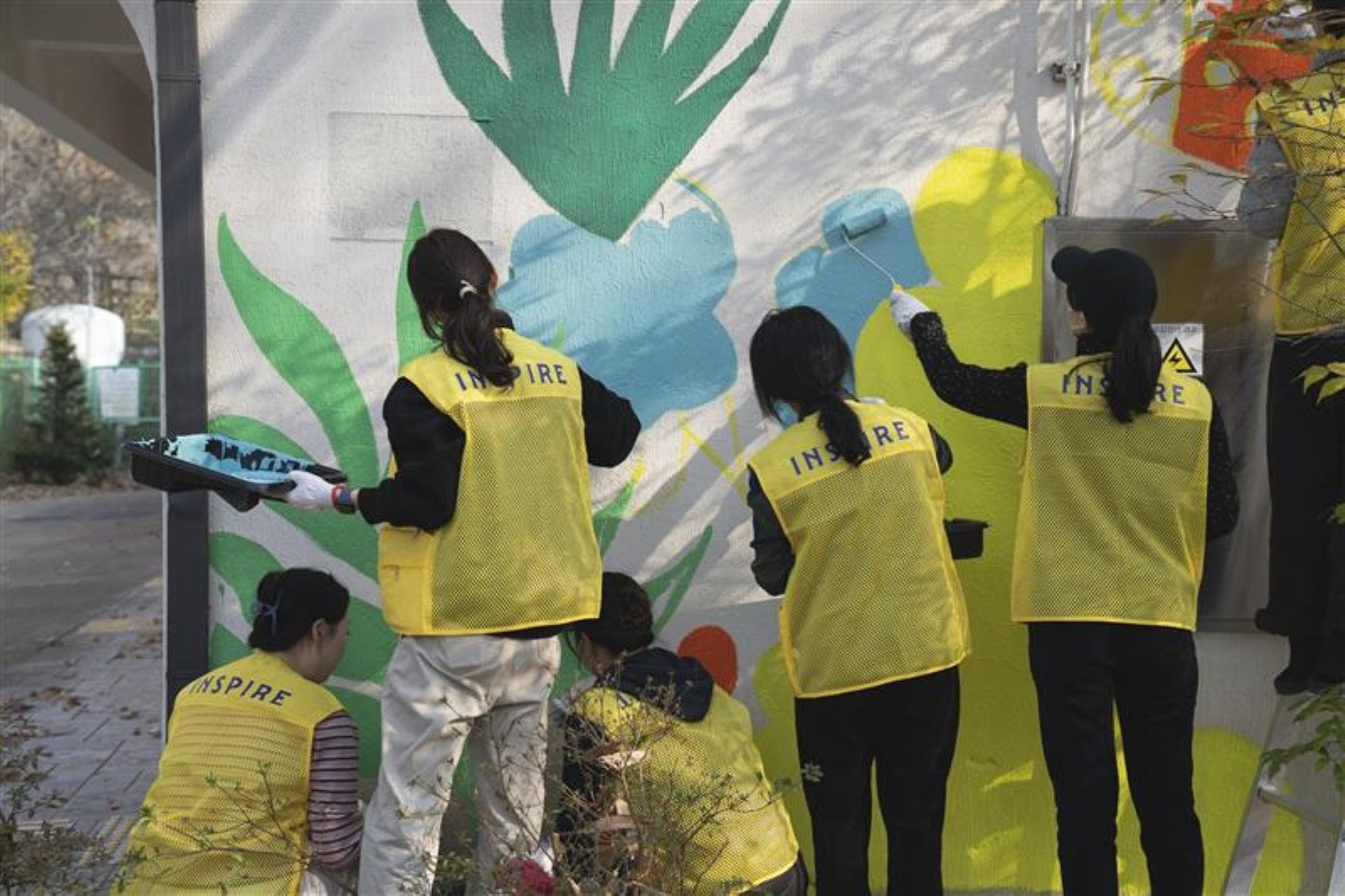 지난 11월 20일, 인천 북도면 소재 사회복지시설 장봉혜림원에서 인스파이어 임직원 봉사단이 벽화 그리기 봉사활동을 진행했다