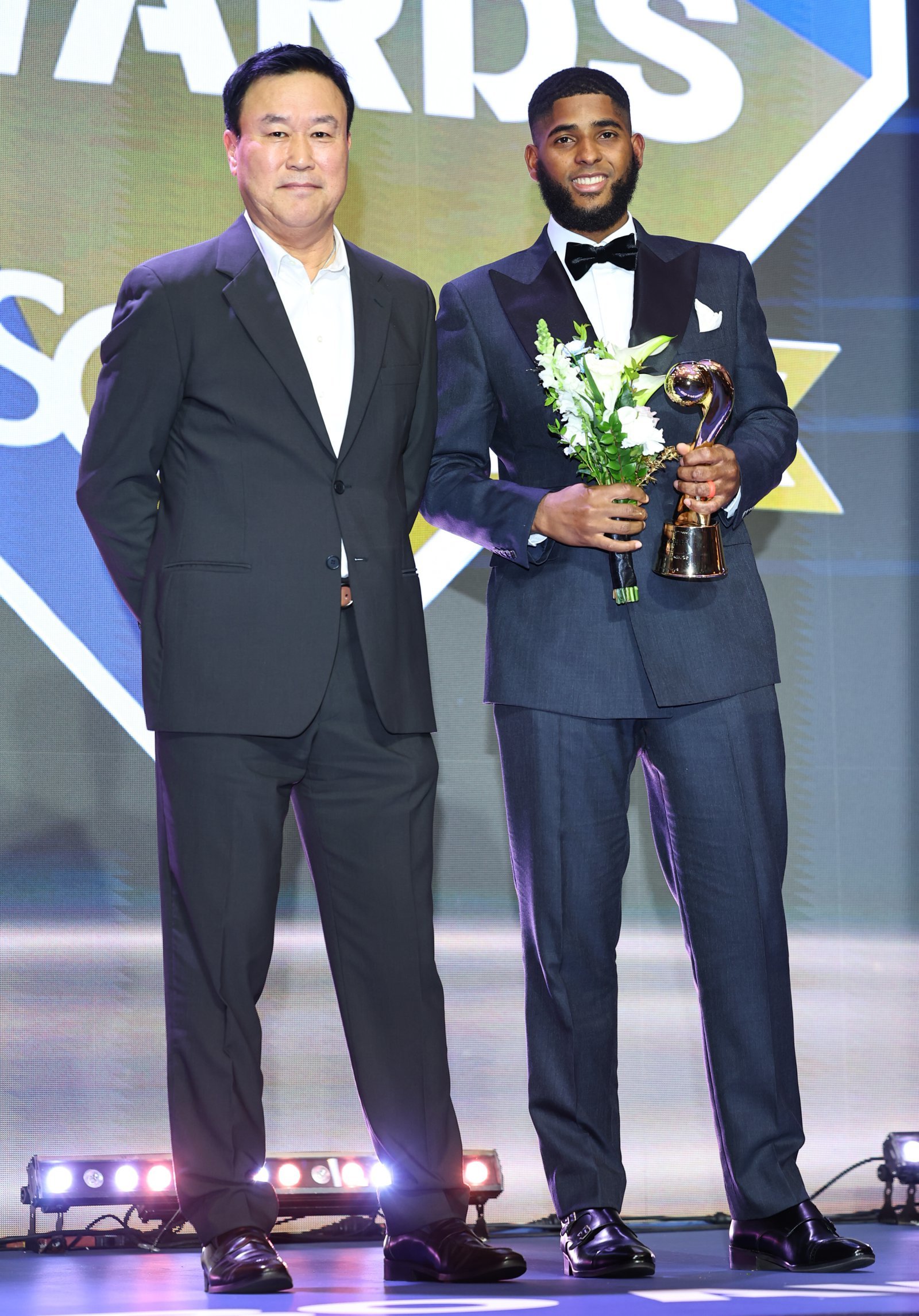 일반적으로 외국인선수의 비시즌 시상식 참석률은 그리 높지 않다. 이날 시상식에도 폰세와 디아즈만 깔끔한 정장을 차려입고 모습을 드러냈다. 빅터 레이예스(롯데 자이언츠·최다안타왕), 라일리 톰슨(NC 다이노스·다승왕), 기예르모 에레디아(SSG 랜더스·좌익수 수비상)는 영상을 통해 수상 소감을 전했다.