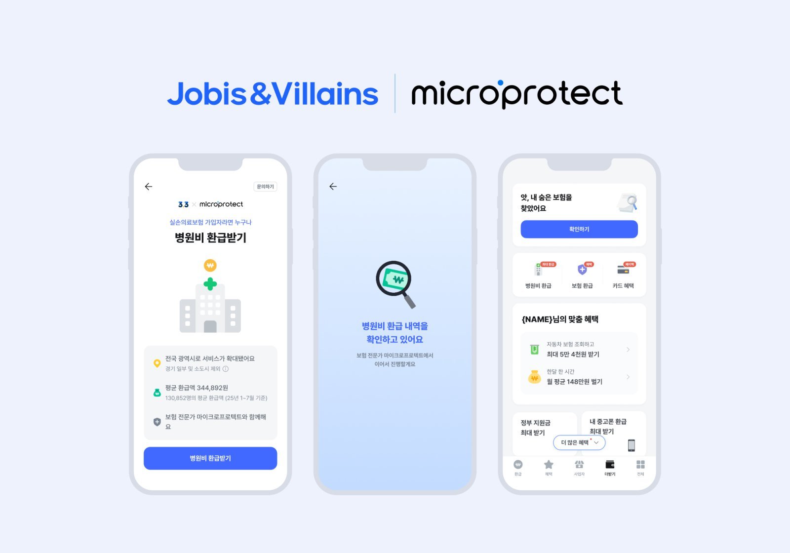 김범섭 자비스앤빌런즈 대표는 “마이크로프로텍트는 출시 당시부터 삼쩜삼과 유사한 플로우와 로직을 갖추고 있어 관심을 갖고 있었다”며 “병원비와 세금 환급을 포함해 고객 일상에 편의와 혜택을 주는 생활밀착형 플랫폼으로 나아갈 것”이라고 했다.