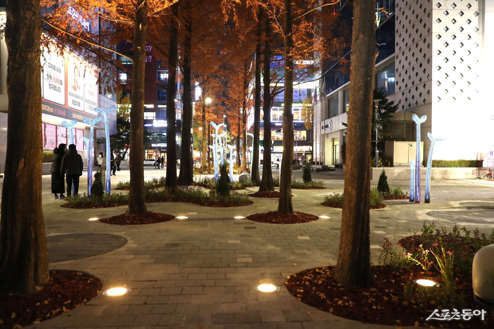 또한 서현역을 마주하는 메타세쿼이아 길에는 새싹 조형물과 바닥 센서 조명을 도입해, 주변 상업지역 대비 어두웠던 보행환경을 밝히고 야간 안전성을 크게 높였다.