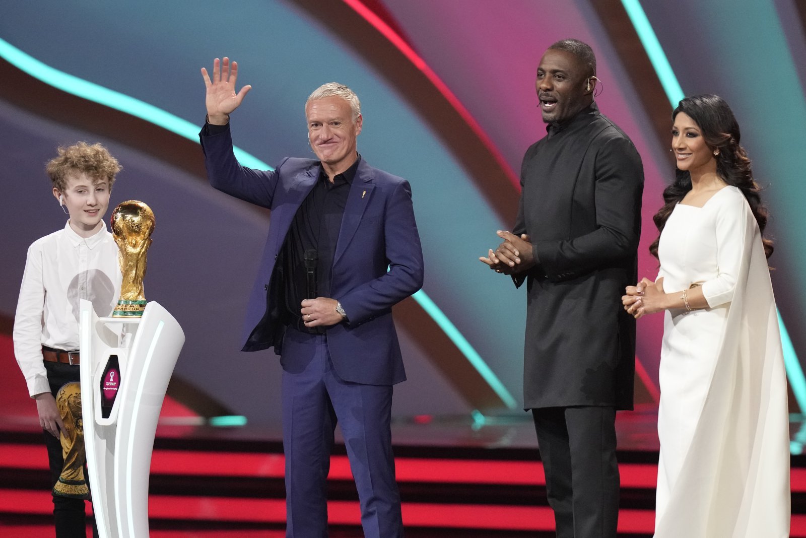북중미월드컵은 3개국 16개 도시에서 열리기 때문에 이동 거리가 길고 시차도 발생한다. 짧으면 1시간이 걸리지만 길게는 6시간 이상 비행해야하는 북중미 동서횡단이 불가피할 것으로 보인다. 사진은 2022년 4월2일 카타르 도하에서 열린 카타르월드컵 조 추첨식에 참여한 디디에 데샹 프랑스대표팀 감독(왼쪽 2번째). AP뉴시스