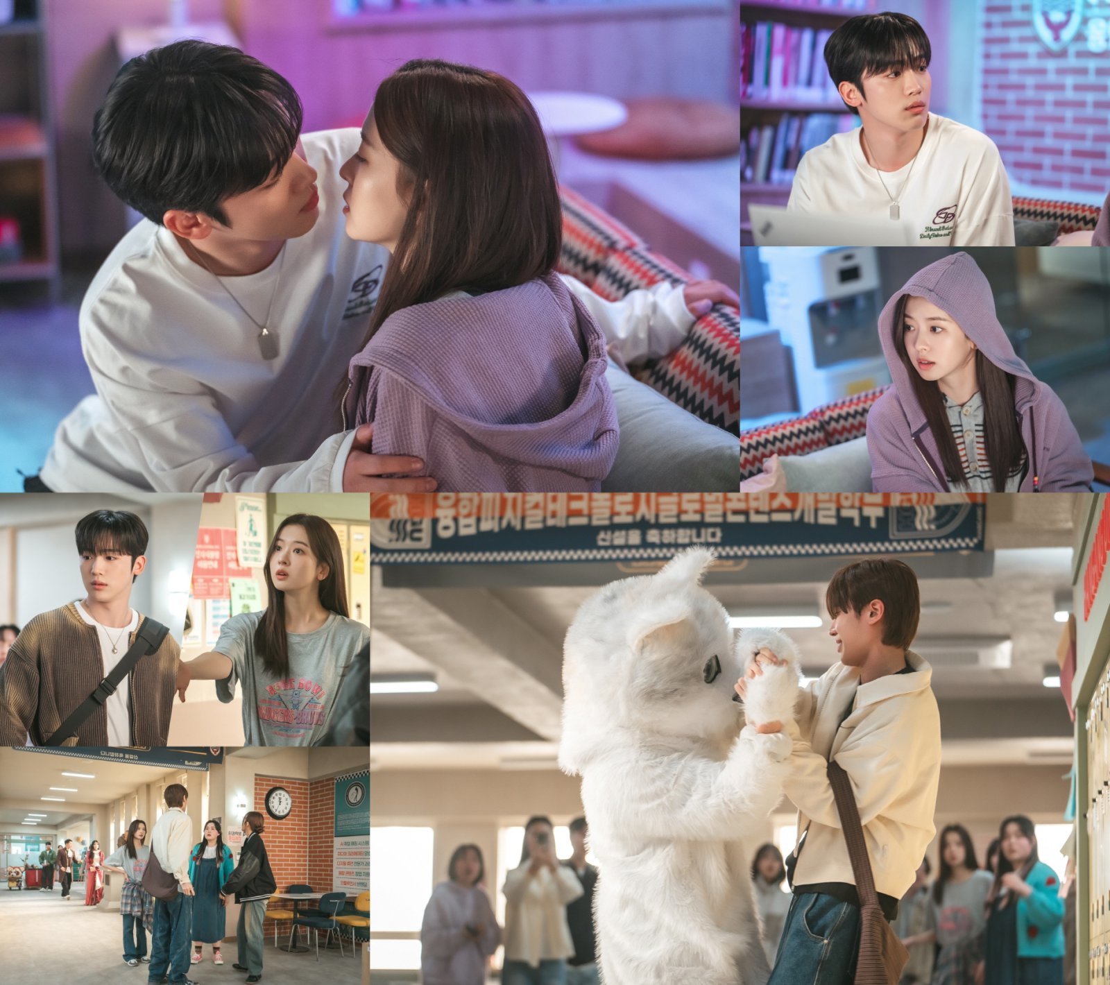 이번에 함께 공개된 스틸에서는 ‘융테콘’ 라운지 한복판에서 벌어진 소동도 담겼다. 주연산과 양나래(권영은), 강동원(민서)이 모델학과 학생과 대치한 채 날 선 분위기를 드러내고, 뒤편의 강민학은 복잡한 표정을 짓고 있어 사건의 전말에 궁금증을 더한다. 여기에 고양이탈을 쓴 정체불명 인물이 등장해 격렬한 실랑이를 벌이는 장면까지 예고되며, 로맨스와 해프닝이 맞물린 전개가 예고됐다.