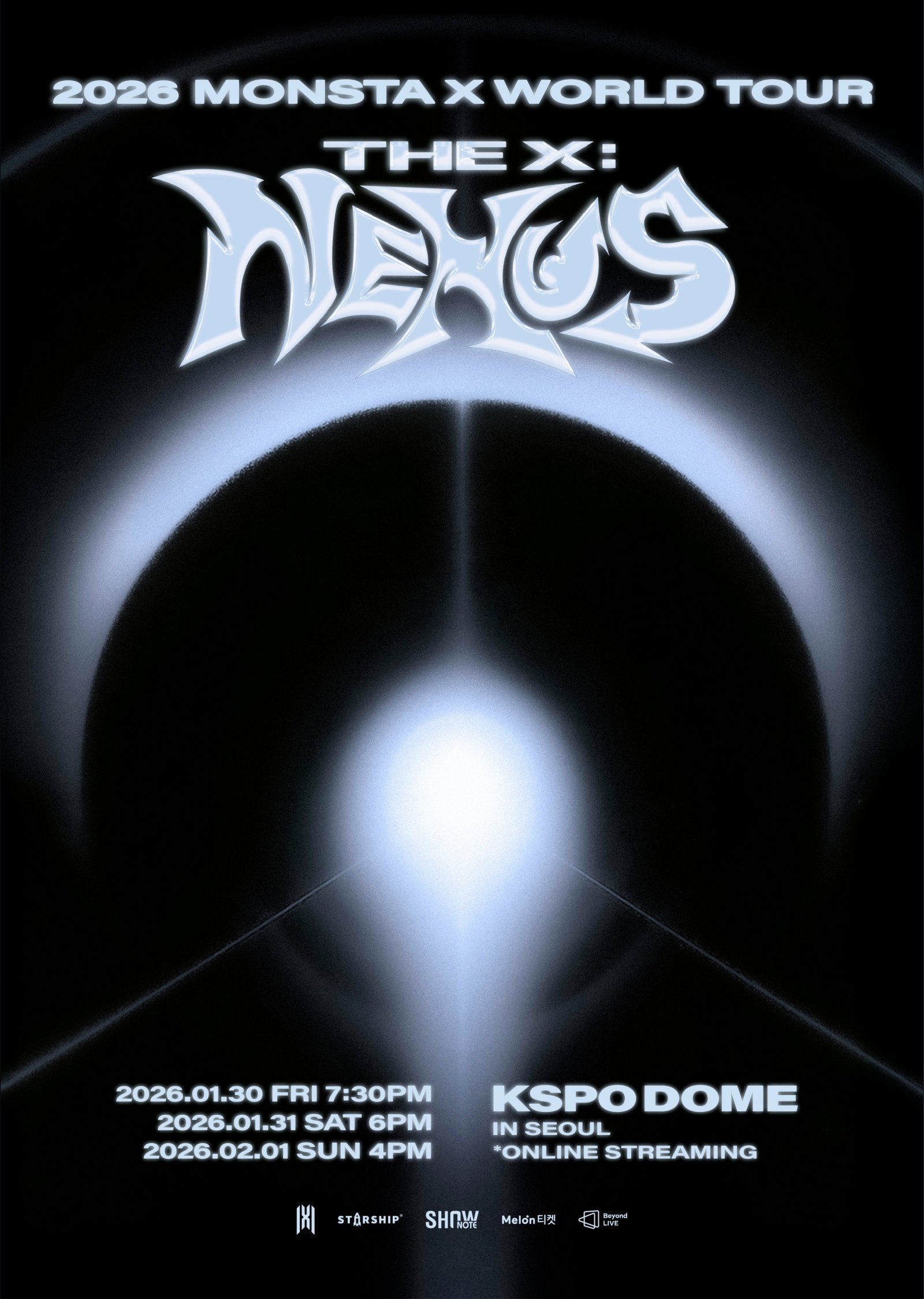 27일 소속사 스타쉽엔터테인먼트에 따르면 몬스타엑스는 2026년 1월 30일과 31일 그리고 2월 1일 3일에 걸쳐 서울 송파구 KSPO DOME(구 체조경기장)에서 새 월드투어 ‘THE X : NEXUS’를 개최한다.