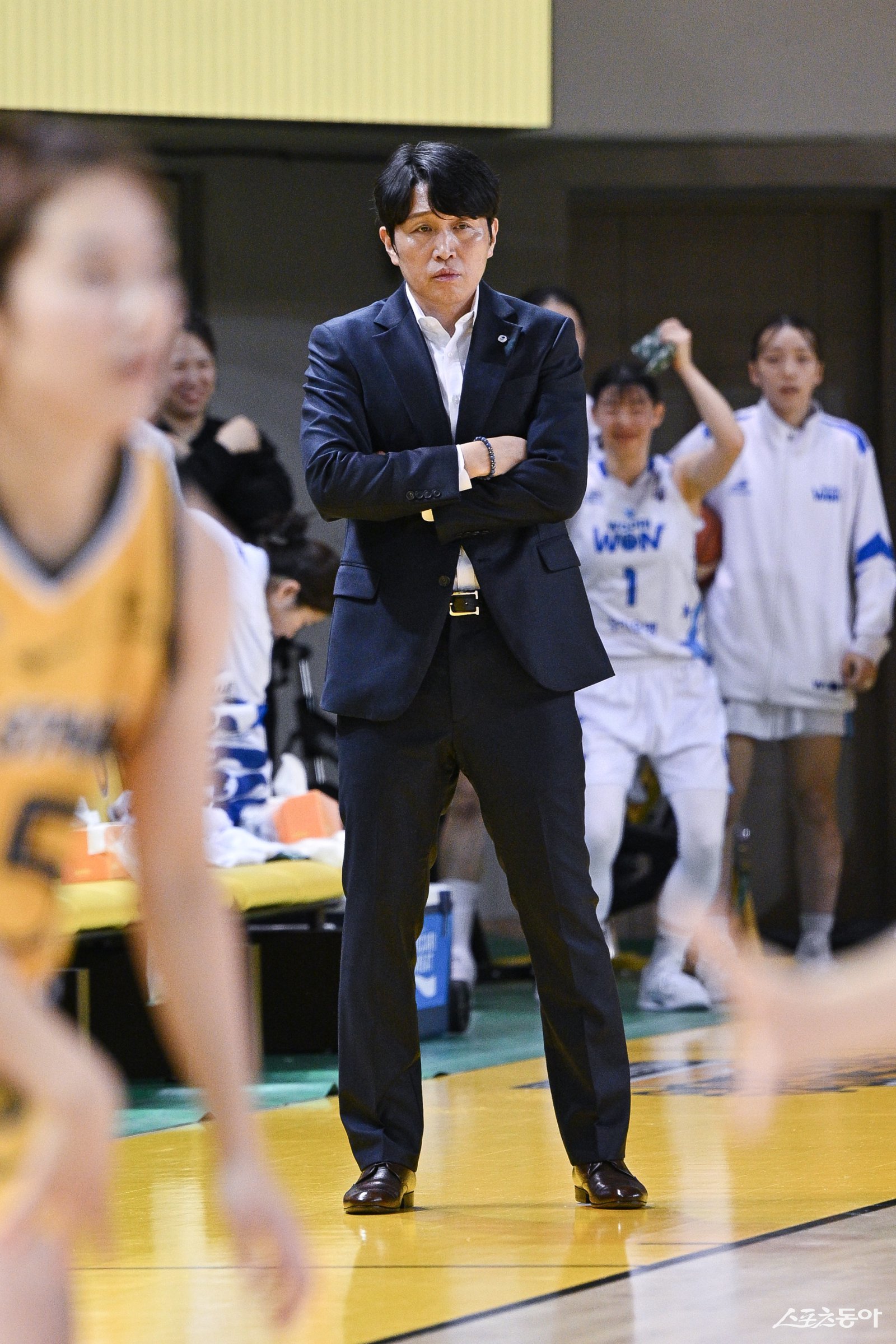 올 시즌에는 위 감독의 계획과 달랐던 게 많다. 지난 시즌 정규리그 우승에 기여한 스나가와 나츠키가 아시아쿼터 선수 드래프트에서 BNK 썸에 지명돼 가드진 구상이 틀어졌다. 설상가상으로 한엄지, 유승희 등의 부상자도 발생했다. 위 감독은 “지난 시즌에는 (나츠키의) 그 한 자리를 잘 돌렸는데 (세키) 나나미가 맡기에는 주 임무가 나츠키처럼 볼 핸들러가 아니었어서 한계에 부딪힐 수 있다. 여기에 부상자가 있어 가용 인원도 많지 않은데, 포지션이 겹치는 경우가 많아 고민”이라고 털어놓았다.