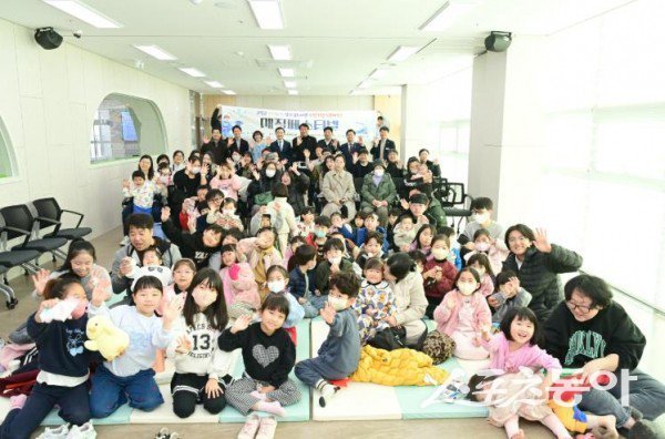 고령군 아이누리 장난감도서관이 29일 이전해 오픈하우스를 개최한 후 아이들과 기념촬영을 하고 있는 모습. 사진제공ㅣ고령군