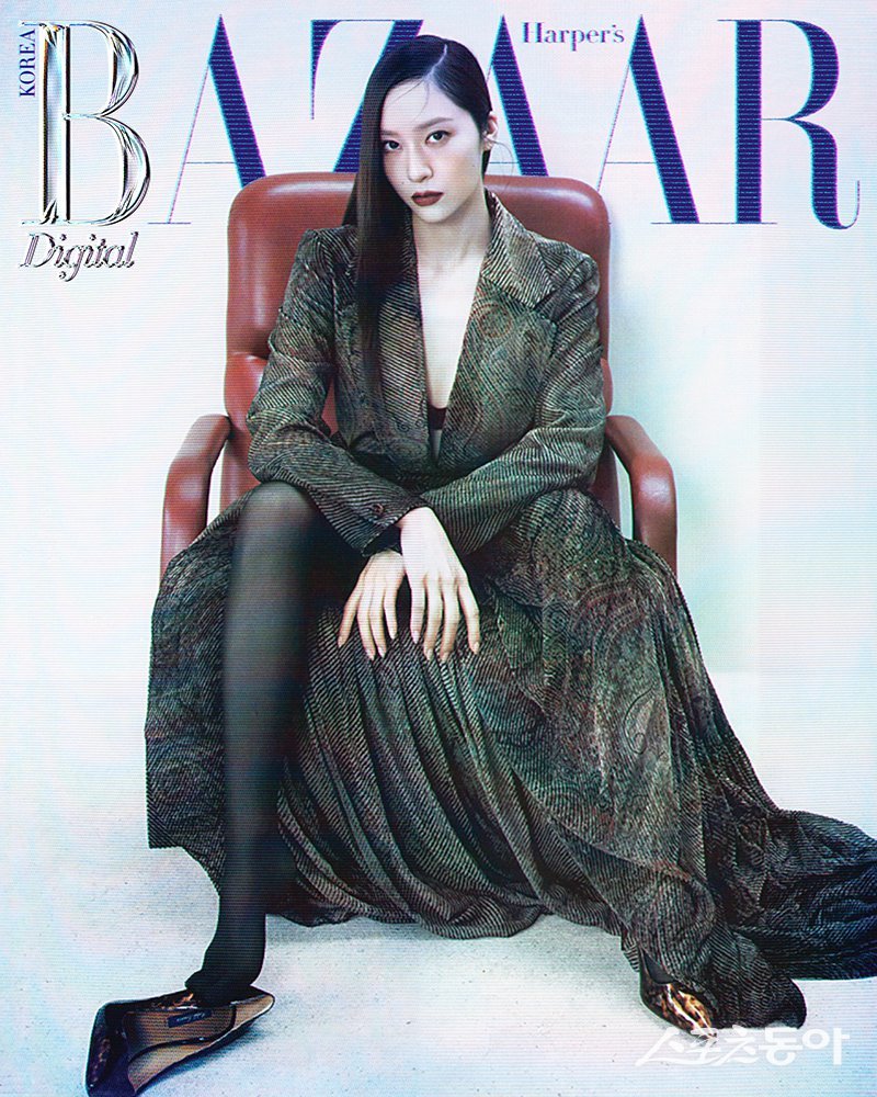 2일 공개된 화보는 ‘Beyond the Frame’으로 촬영했다. 랄프 로렌 컬렉션 2025 폴 시즌과 함께한 프로젝트로, 스튜디오에 설치된 대형 LED 스크린에 설산과 석양, 말 등 랄프 로렌을 떠올리게 하는 이미지가 펼쳐진 가운데 크리스탈이 특유의 시크한 분위기를 드러냈다.