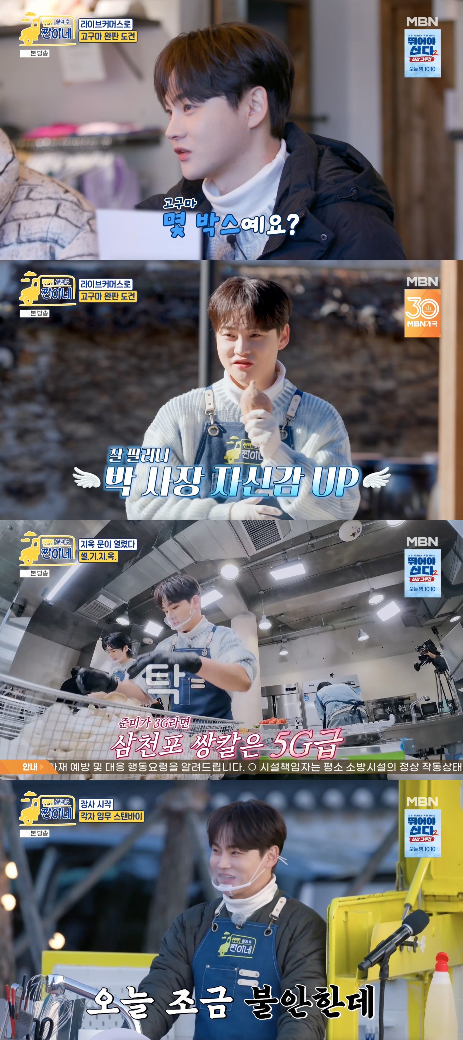 1일 방송에서는 강화도 특산물 고구마를 내건 대형 라이브커머스 미션이 공개됐다. 박서진은 먼저 소풍 도시락으로 준비한 고구마 브륄레와 특제 고구마 김밥으로 알바생 수호의 마음을 사로잡은 뒤, 고구마 300박스 완판에 도전하는 라이브커머스 현장으로 이동했다. 생방송 직전까지 긴장한 기색이 역력했지만, 카메라가 켜지자 곧바로 침착한 진행으로 분위기를 주도했다.