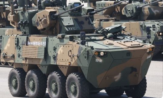 건군 75주년 국군의날 행사 때 공개된 30mm 차륜형 대공포 ‘천호’. 2일 경기 파주에서 차륜형 대공포 ‘천호’의 30mm 대공포탄이 폭발해 부사관 등 4명이 다쳤다. 사진은 기사 내용과 직접 관련 없음.