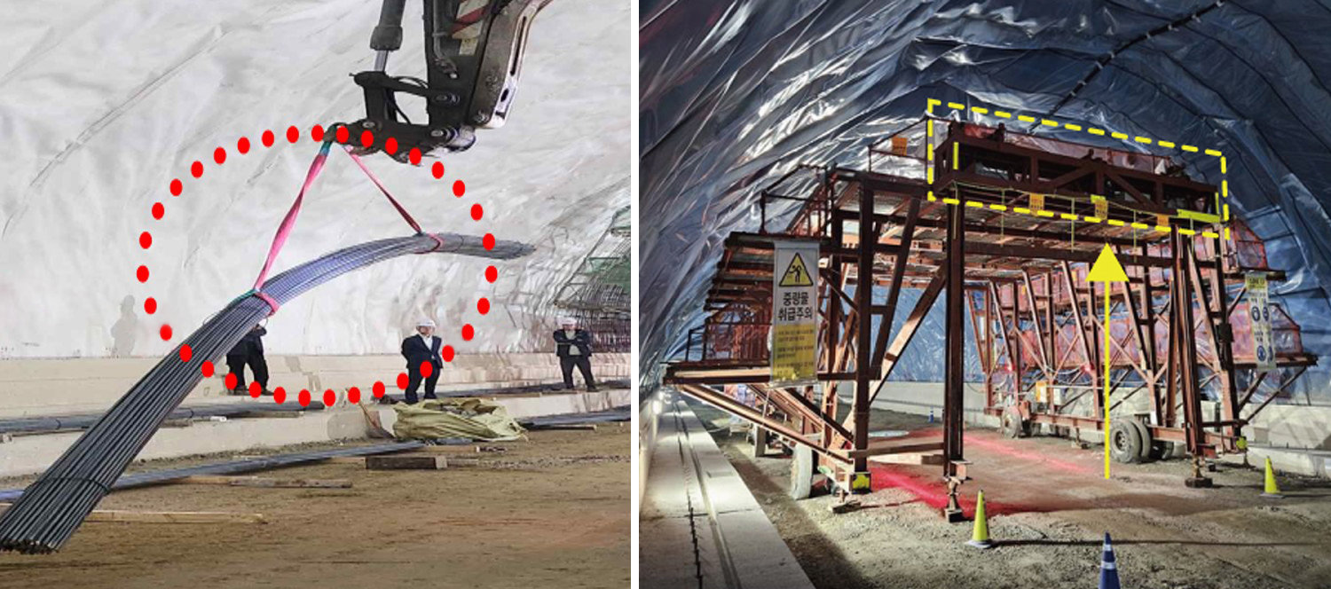일반적으로 터널 공사장은 조도가 낮고 소음이 심해, 크레인 등 중장비로 무거운 철근을 옮길 때 근로자의 주의가 각별히 요구된다. 기존에는 근로자가 중장비 바로 옆에서 수동으로 철근을 잡아줘야 해 추락이나 끼임 사고 위험이 상존했다. 이번에 도입된 양중 리프트는 이러한 위험 요소를 원천 차단한다. 근로자가 위험 반경에 접근하지 않고도 간단한 조작만으로 철근을 자동 혹은 반자동으로 운반할 수 있기 때문이다.