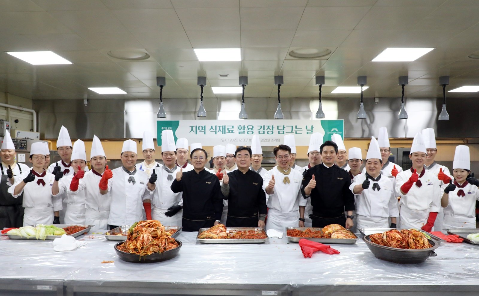 강원랜드가 12월 3일 하이원 그랜드호텔 5층 연회장 주방에서 지역 농산물 소비 확대와 ESG 가치 실천을 목표로 ‘지역 배추 활용 김장 행사’를 열었다.