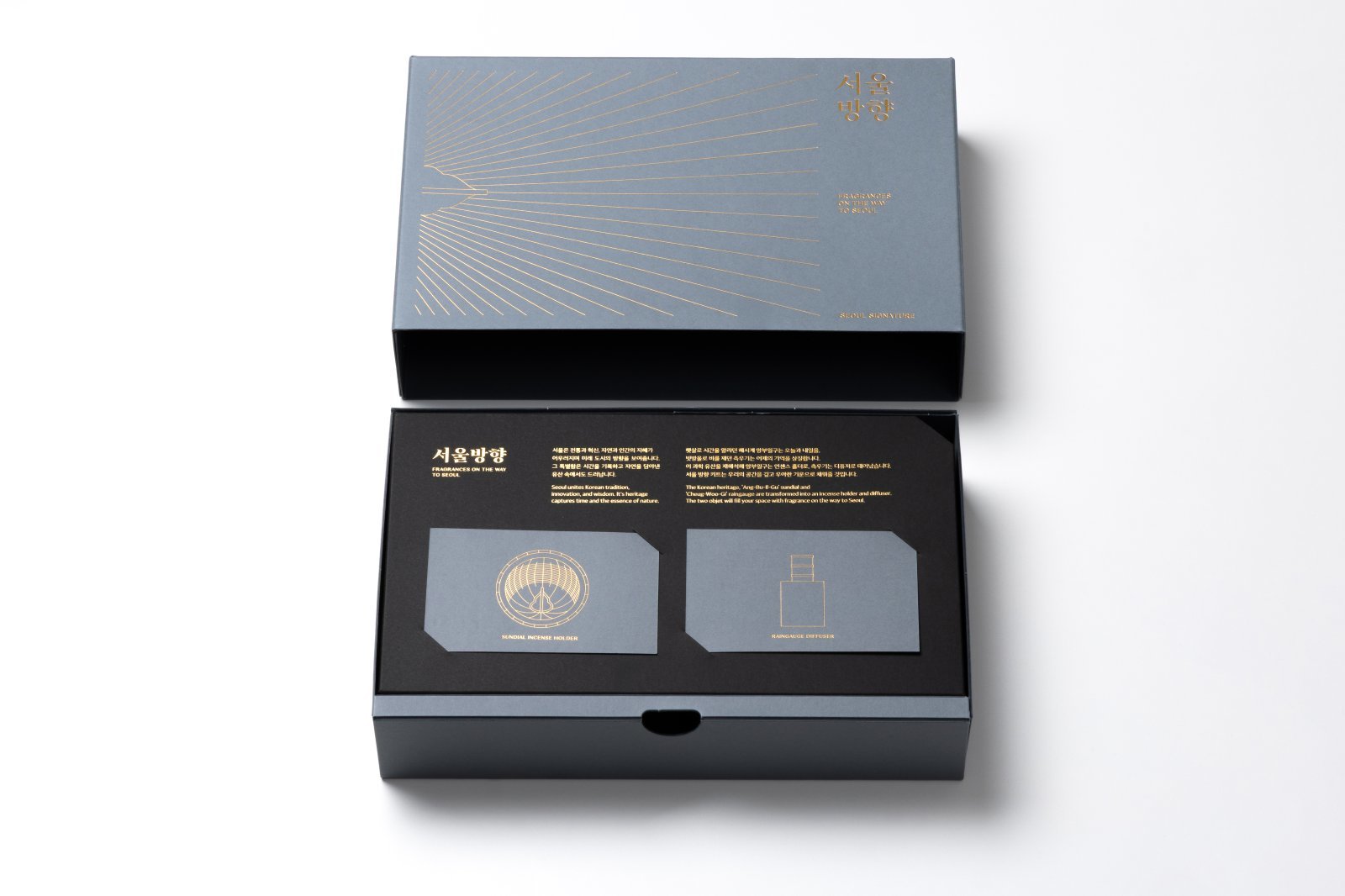 첫 번째 신상품 ‘서울방향’은 조선시대 과학기술의 대표 물건인 해시계와 측우기에서 영감을 얻어 제작했다. 본체 오브제와 인센스 홀더·디퓨저를 중심으로 인센스 스틱, 디퓨저 오일까지 포함된 구성으로 실용성과 디자인 요소를 동시에 갖췄다.