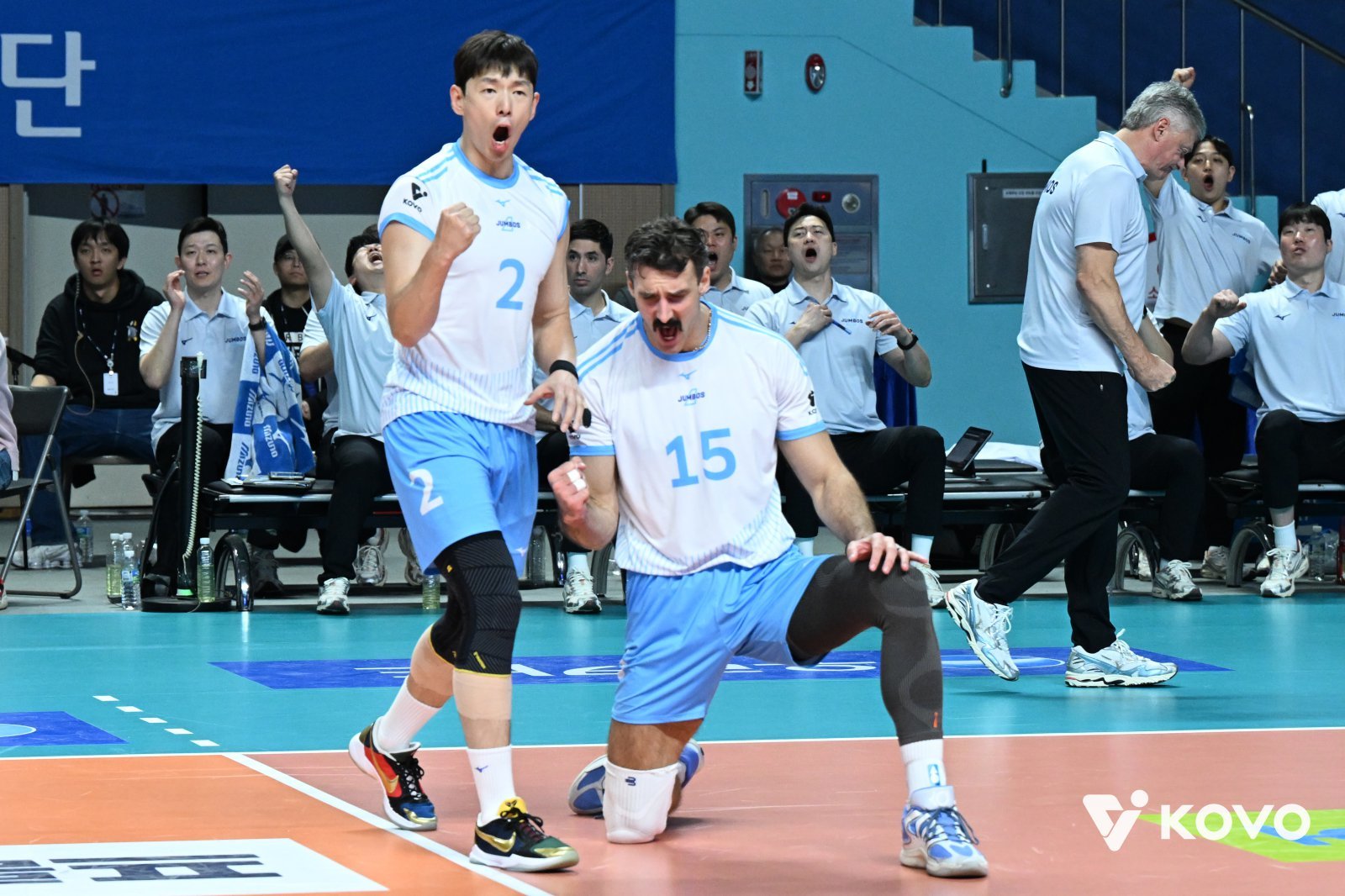 대한항공은 아포짓 스파이커(라이트) 러셀(26점·공격 성공률 59.38%)이 서브 에이스(5개), 블로킹(2개), 후위 공격(10개)으로 고루 득점하며 트리플크라운(한 경기 후위공격·서브에이스·블로킹 각 3개 이상)에 가까운 활약을 펼쳤다. 팀 서브 에이스(7개), 블로킹(13개), 공격 성공률(53.60%) 역시 우리카드(2개·8개·47.42%)에 앞섰다. 우리카드는 하파엘 아라우조(18점·50.00%)가 분전했지만 홀로 승부를 뒤집기엔 역부족이었다.