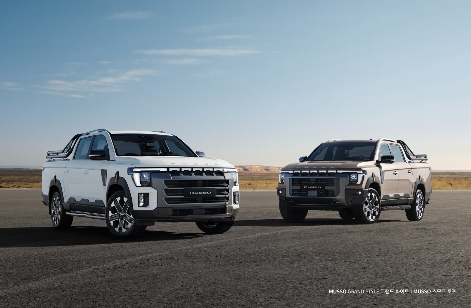 KG 모빌리티가 프로젝트명 ‘Q300’으로 개발해 온 차세대 픽업의 공식 차명을 ‘무쏘(MUSSO)’로 확정하고, 외관 이미지를 공개했다.무쏘(왼쪽)와 무쏘 그랜드 스타일. 사진제공 |KGM