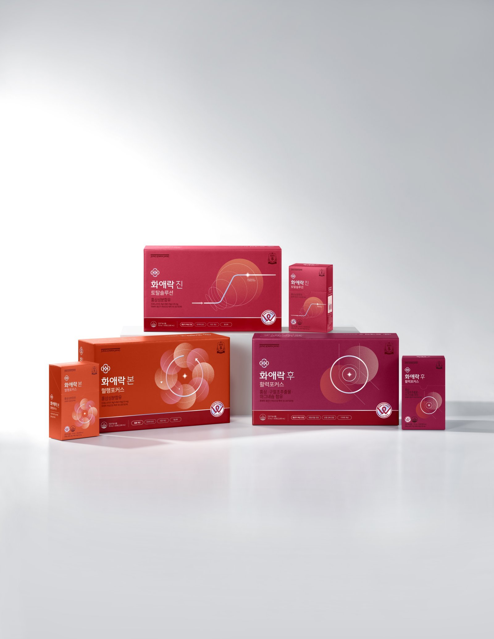 기존 ‘화애락 터닝미’, ‘화애락 온미’, ‘화애락 액티브미’ 등을 각각 ‘화애락 진 토탈솔루션’, ‘화애락 본 혈행포커스’, ‘화애락 후 활력포커스’ 등으로 리뉴얼 출시했다. 여성갱년기 신규 특허를 기반으로 갱년기 여성건강 전문성을 고도화했으며, 여성건강 고민에 대한 다양한 니즈에 대응했다는 게 회사 측 설명이다.