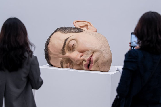 지난해 국립현대미술관에서 열린 론 뮤익 전시 전경. 대형 조각 앞에서 관람객들이 작품을 감상하고 있다. 사진제공|국립현대미술관
