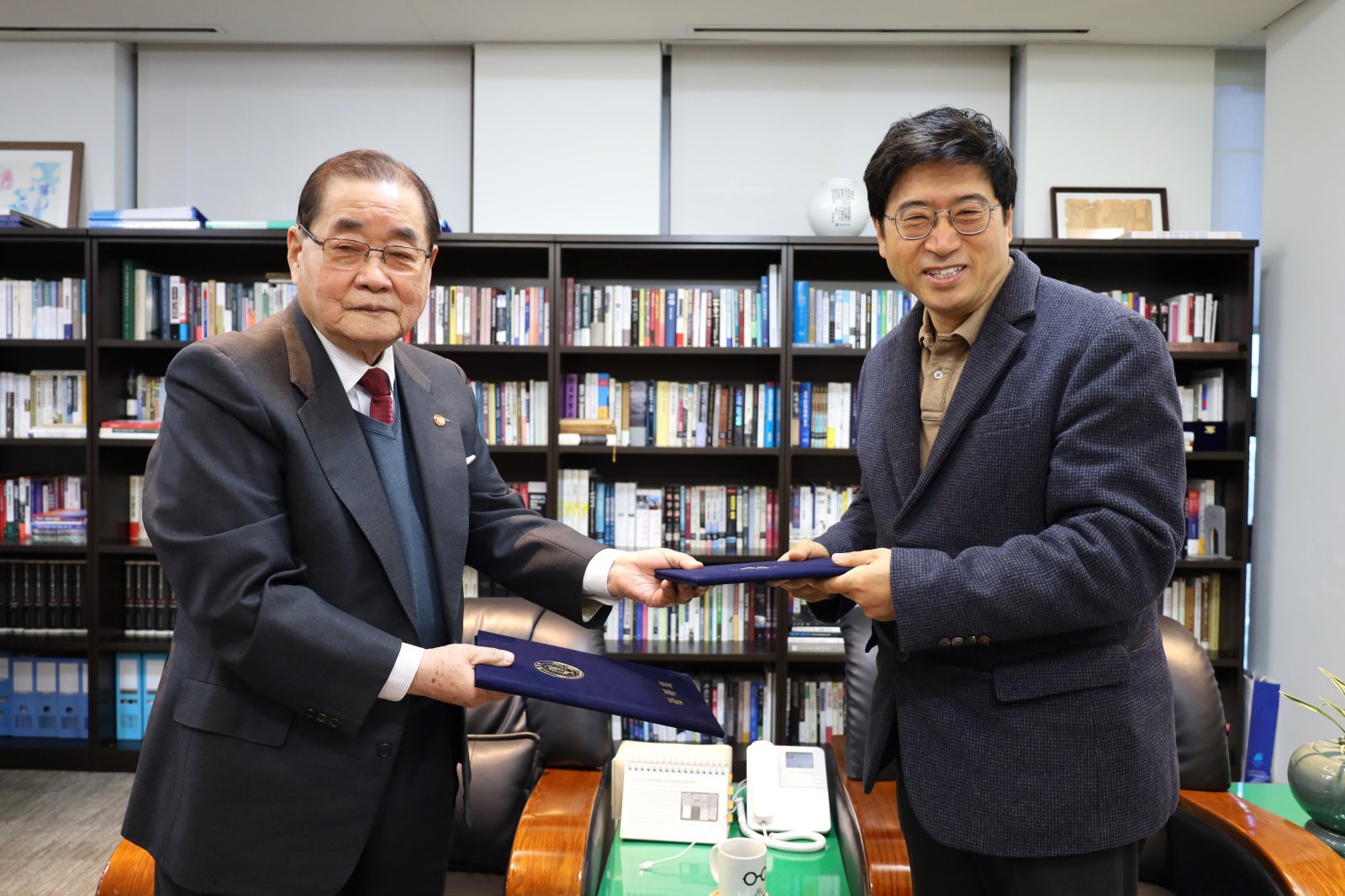 왼쪽부터 이종찬 광복회장, 신민식 자생의료재단 사회공헌위원장. 사진제공|자생한방병원