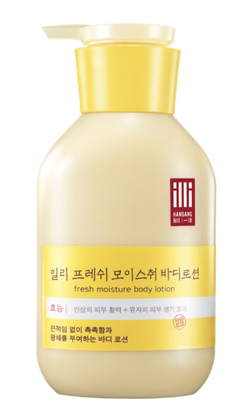 무늬만 바디로션이 아니다. 일리 프레쉬 모이스춰 바디로션은 내용까지 알차다. 인삼추출물이 피부에 활력을 주고, 바디라인을 더욱 매끄럽고 탄력 있게 만든다. 레몬의 3배, 사과의 25배 이상의 비타민C가 함유되어 있는 ‘유자성분’도 피부 회복에 도움을 주고, 달콤 상큼한 향을 부여했다. 동백오일은 항산화작용을 하는 올레인산이 함유되어 보습에 효과적이고, 피부를 진정시켜주어 피부 트러블에 효과적이다. 영양과 함께 윤기를 주는 역할을 한다.
