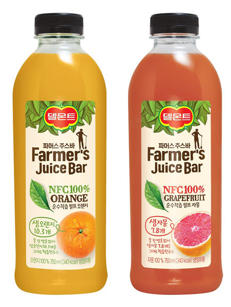 델몬트 파머스 주스바는 농부의 정성과 고집, 자부심이 고스란히 담긴 신선한 착즙주스라는 콘셉트를 내세웠다. 1∼2인 가구가 부담 없이 즐길 수 있는 750ml 용량이며 오렌지, 자몽 총 2가지 맛으로 구성됐다. 패키지는 한 손으로 쥐기 편한 원통형 스타일이다. 라벨에는 착즙한 과일의 개수를 넣어 제품에 담긴 과일의 풍부한 영양을 강조했다