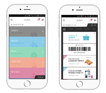 SPC그룹의 멤버십 서비스 ‘해피포인트’가 모바일 애플리케이션 ‘해피앱’(사진)을 전면 리뉴얼했다. 해피포인트의 이벤트와 혜택을 고객이 손쉽게 이용할 수 있도록 개편하고 ‘해피스탬프’, ‘해피스토리’, ‘해피존’ 등의 신규 서비스를 추가했다. 새롭게 추가된 서비스인 ‘해피스탬프’는 제품 구입시 영수증을 통해 발행됐던 종이 스탬프를 디지털화 한 것으로 제품 구입 후 해피앱을 제시하면 자동으로 스탬프를 관리할 수 있도록 했다. ‘해피스토리’ 메뉴에서는 파리바게뜨, 배스킨라빈스, 던킨도너츠, 파스쿠찌, 잠바주스, 빚은 등 SPC그룹 브랜드와 제품에 관한 정보, 레시피 등을 제공한다.
