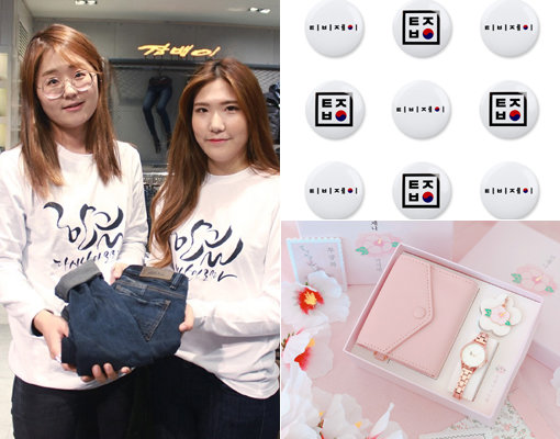 한세엠케이의 캐주얼 브랜드 TBJ는 상품 구입 고객을 대상으로 배지와 쇼퍼백을 선물하는 이벤트를 진행 중이다. 배지와 쇼퍼백에 각각 한글의 미적 요소를 활용한 한글 자음과 태극 문양을 디자인했다.