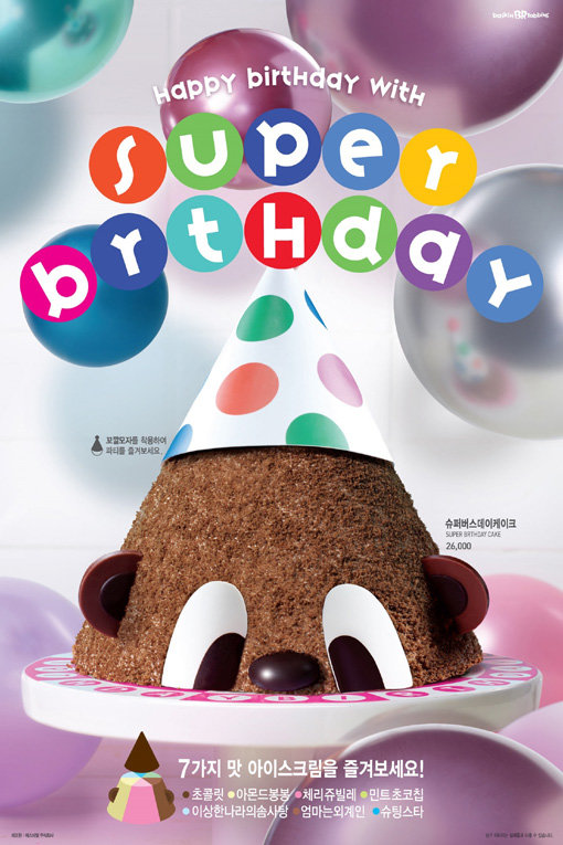 SPC그룹이 운영하는 배스킨라빈스가 ‘슈퍼버스데이’ 아이스크림과 케이크를 출시했다고 28일 밝혔다. ‘슈퍼버스데이 아이스크림’은 솜사탕 맛 아이스크림과 바닐라 빈의 풍미가 담긴 마다가스카르산 바닐라 아이스크림 2종, 다섯 가지 색상의 톡톡 튀는 크런치와 레인보우 스프링클을 넣어 만들었다. 분홍, 파랑, 보라색 등의 색상이 어우러지는 화려한 비주얼이 특징으로, 화려한 생일파티에 어울린다. 지난 8월 말에 출시하며 약 한 달간 한정 판매를 했었고, 고객들의 성원에 힘입어 재출시됐다. ‘슈퍼버스데이 케이크’는 초콜릿, 아몬드봉봉, 체리쥬빌레, 민트초콜릿칩 등 총 7가지 맛 아이스크림으로 구성됐으며, 초콜릿으로 곰돌이의 귀, 눈, 코를 장식해 귀여운 매력을 더했다.