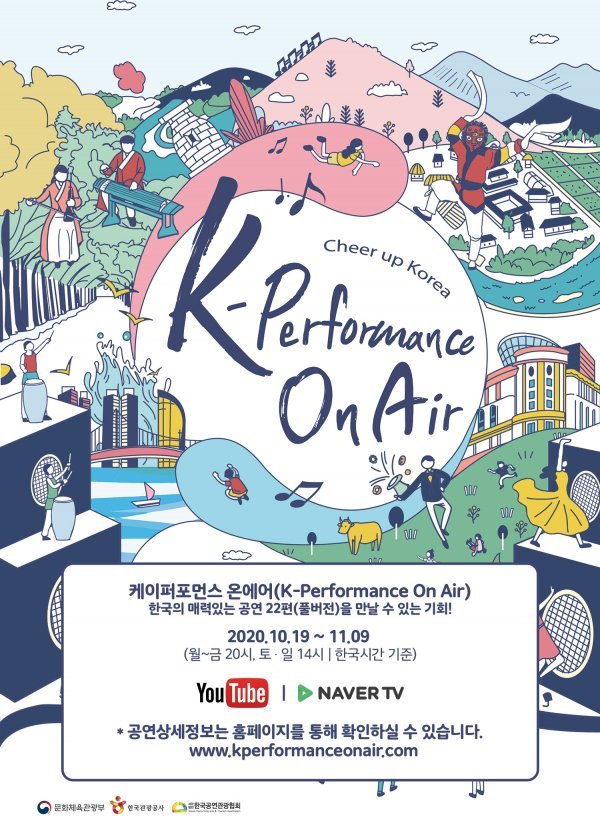 한국관광공사와 한국공연관광협회가 주최, 주관하고 문화체육관광부가 후원하는 공연관광 온라인 쇼케이스 ‘K-퍼포먼스 온에어’가 19일부터 11월9일까지 열린다. 한국을 대표하는 넌버벌, 뮤지컬, 연극 등 다양한 장르의 22개 작품을 매일 한 편씩 온라인에서 공연 전체를 볼 수 있다. 유튜브, 네이버TV를 통해 전 세계에서 볼 수 있고, 유튜브 접속이 어려운 중국은 여행 커뮤니티 사이트인 마펑워(mafengwo)를 통해 송출한다. 대사가 있는 작품에는 영어 자막을 제공한다.