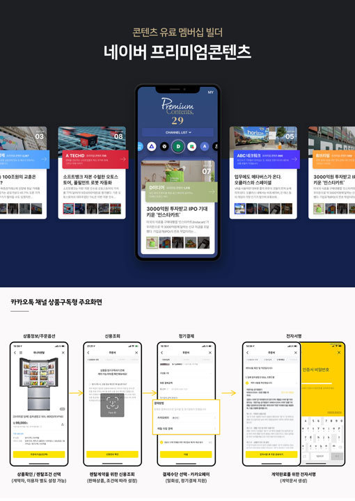 양사는 최근 구독 분야를 콘텐츠까지 확장하기로 했다. 네이버는 창작자 누구나 쉽게 콘텐츠를 제작하고, 유료로 판매할 수 있는 ‘프리미엄콘텐츠’ 플랫폼의 비공개시범테스트를 시작했다. 중소상공인(SME)들이 활동하고 있는 스마트스토어와 구조가 비슷하다. 창작자가 콘텐츠를 제작하고 유료로 판매할 수 있도록 네이버가 툴과 데이터를 제공한다. 판매 방식은 창작자가 단건, 월간 구독권, 그룹 이용권 등 다양한 옵션 중 선택할 수 있다. 카카오도 이르면 상반기 중 카카오톡에 콘텐츠 구독탭을 개설할 것으로 보인다.
